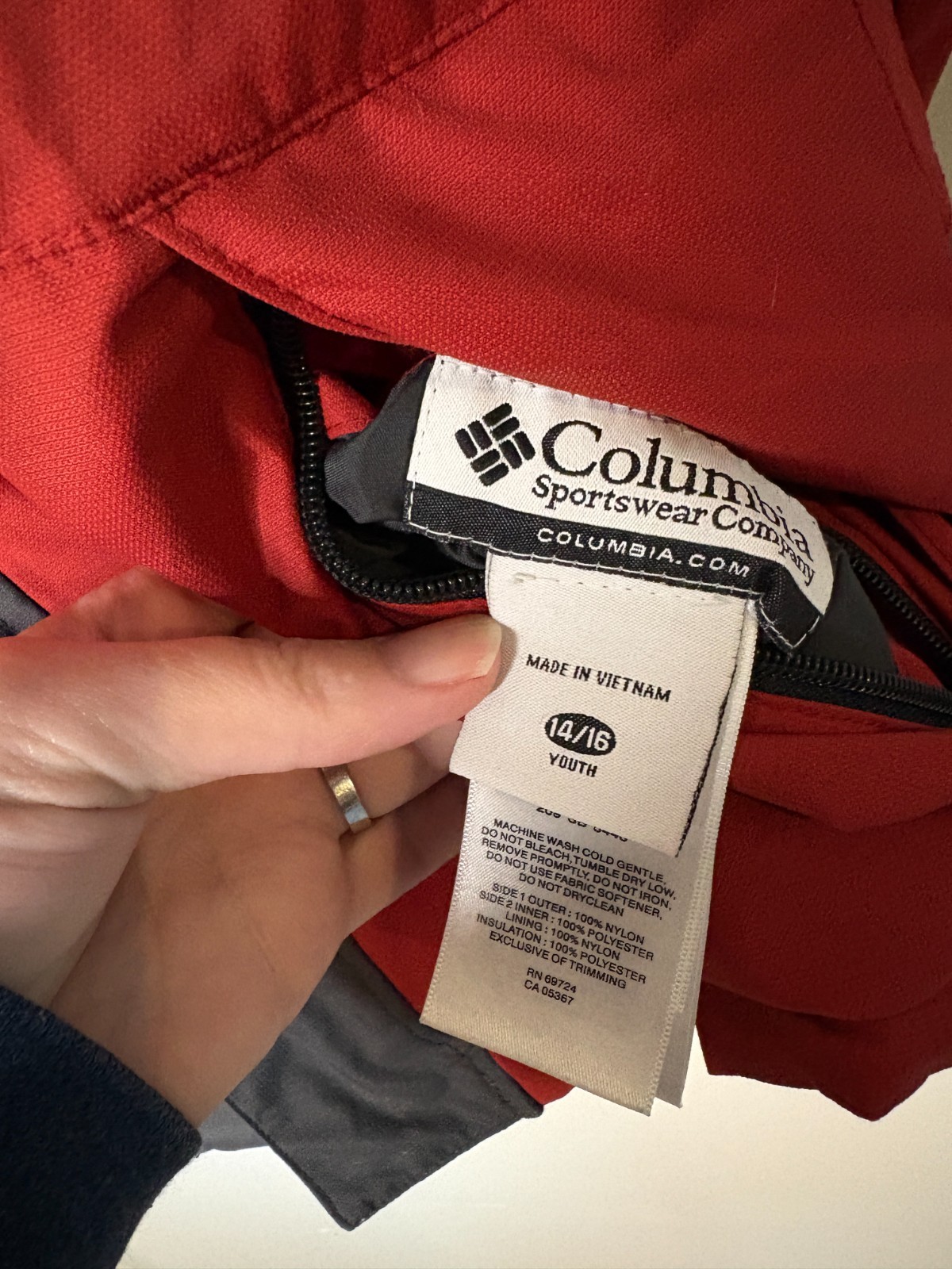 Columbia Youth 14/16 Winter Jacket Red Gray Omni-Shield Insulated Coat Boys Girl