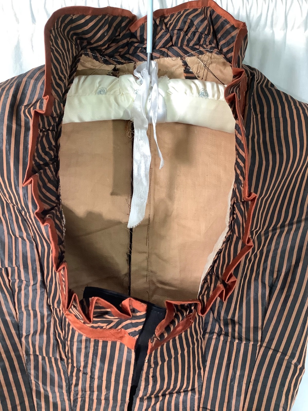 как выглядит Victorian bodice Silk bustle 1880s corset Top sleeveless Stripe black Copper XXS фото