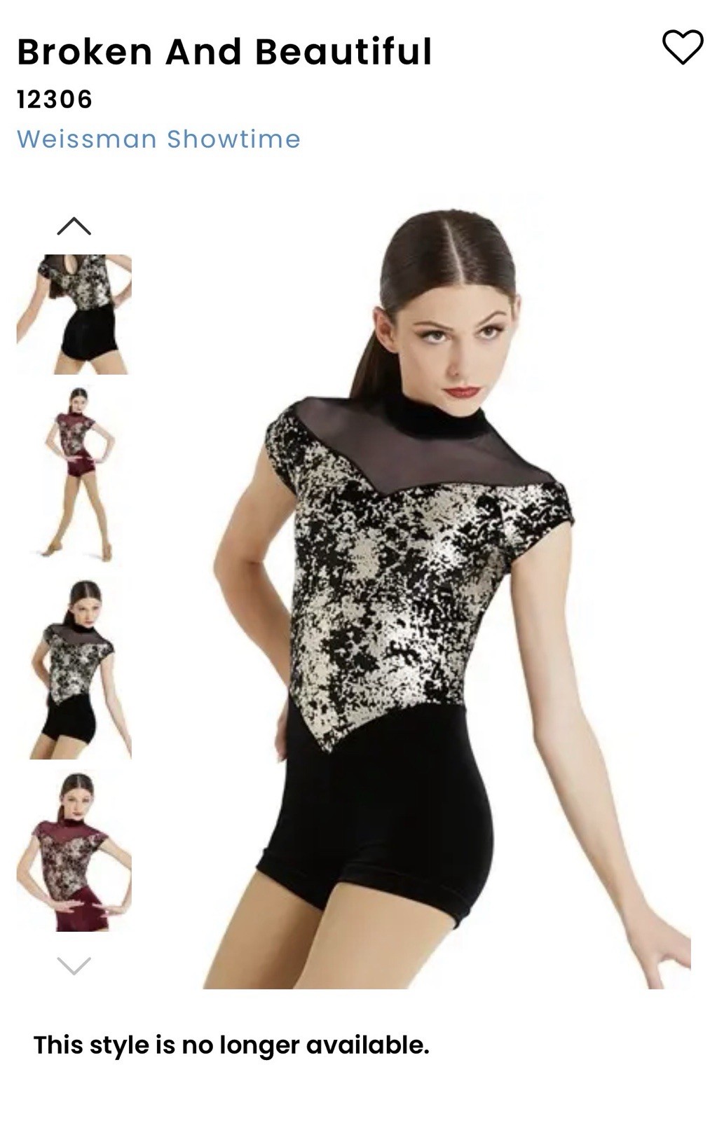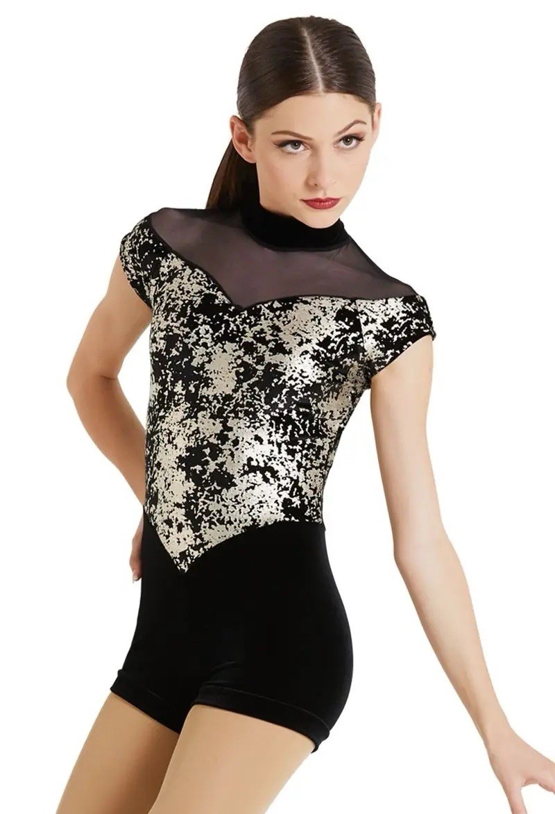Weissman Broken And Beautiful Biketard MC Black Gold 12306 Dance Costume
