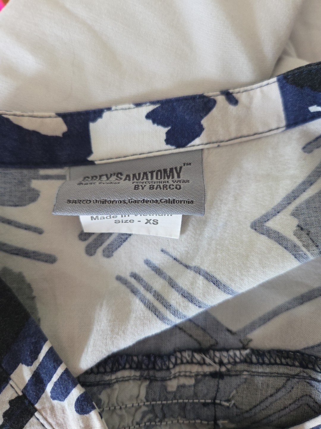Grey s Anatomy Scrub Top Navy Blue Print Women s Small PXS Pants