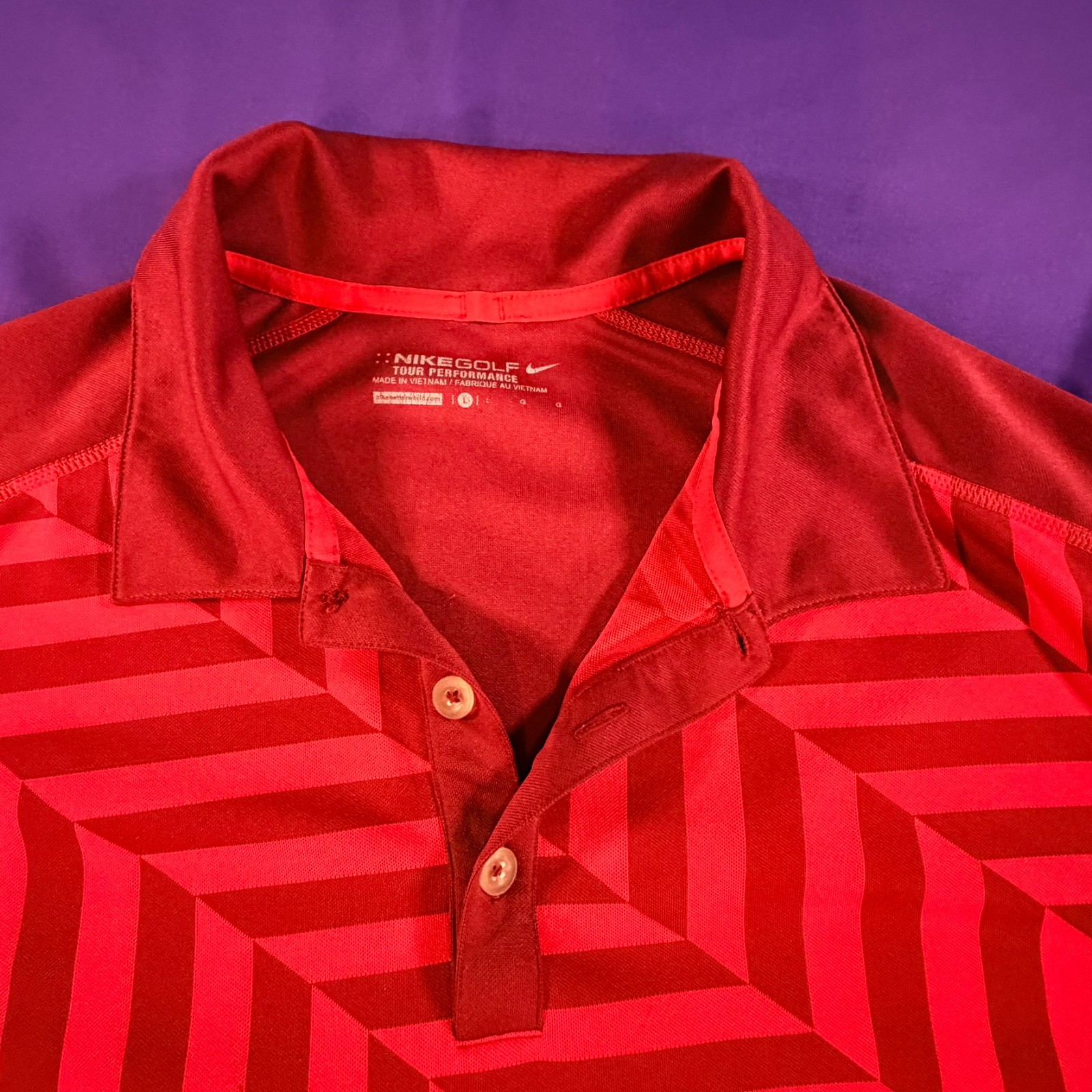 Nike Golf Dri-Fit Tour Performance Short Sleeve Polo Shirt - L - Red Striped