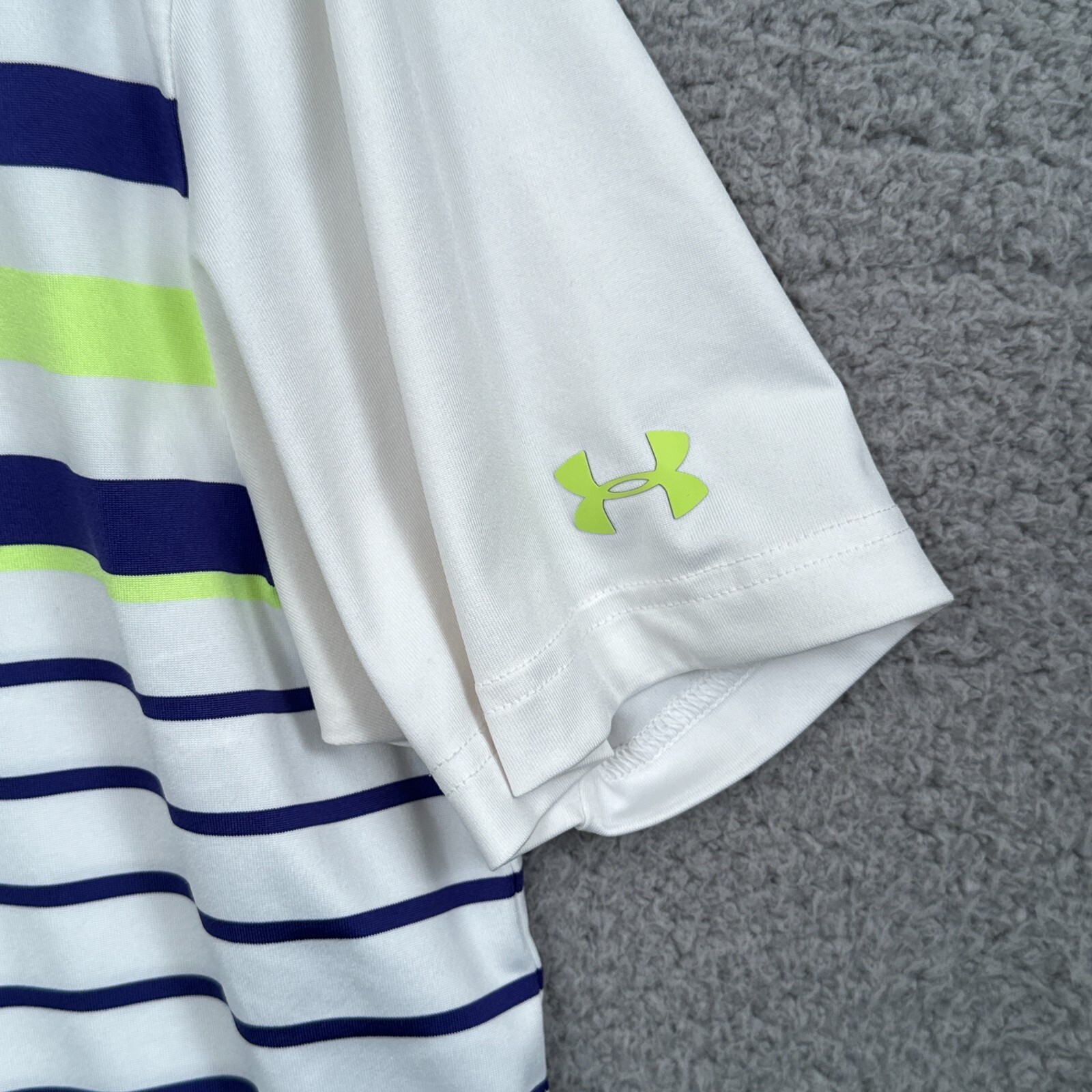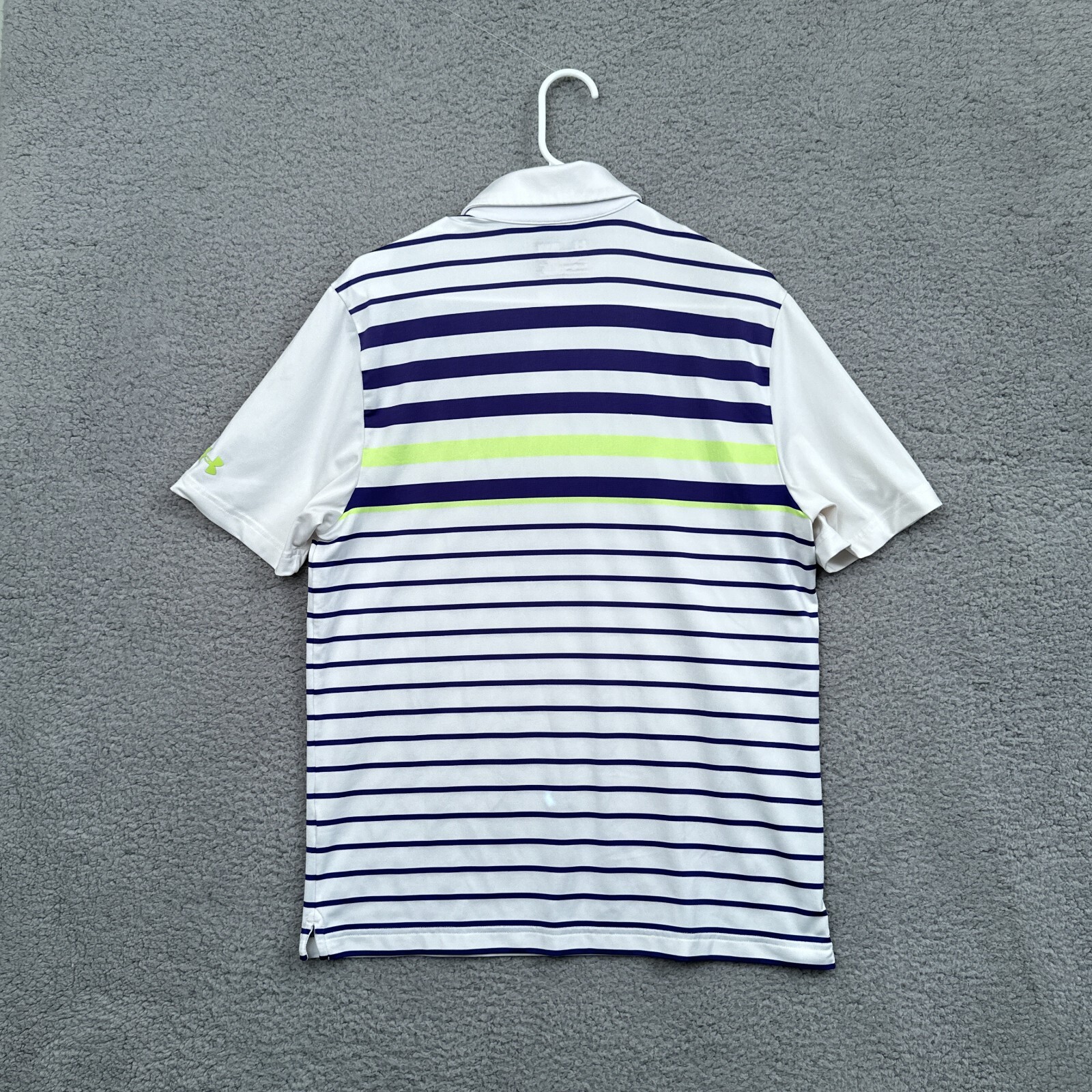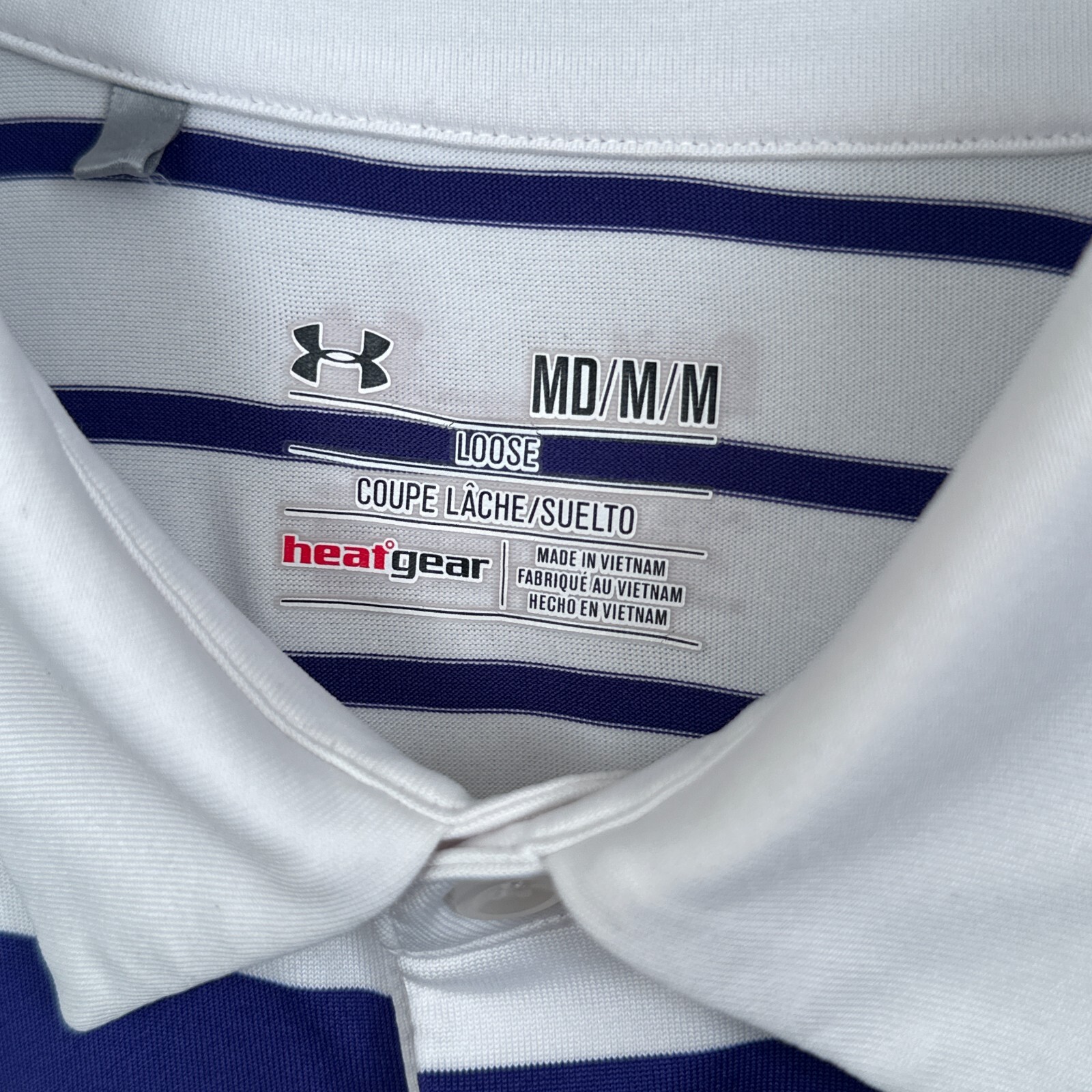 Under Armour HeatGear Mens Medium Blue Striped Golf Polo Shirt Short Sleeve
