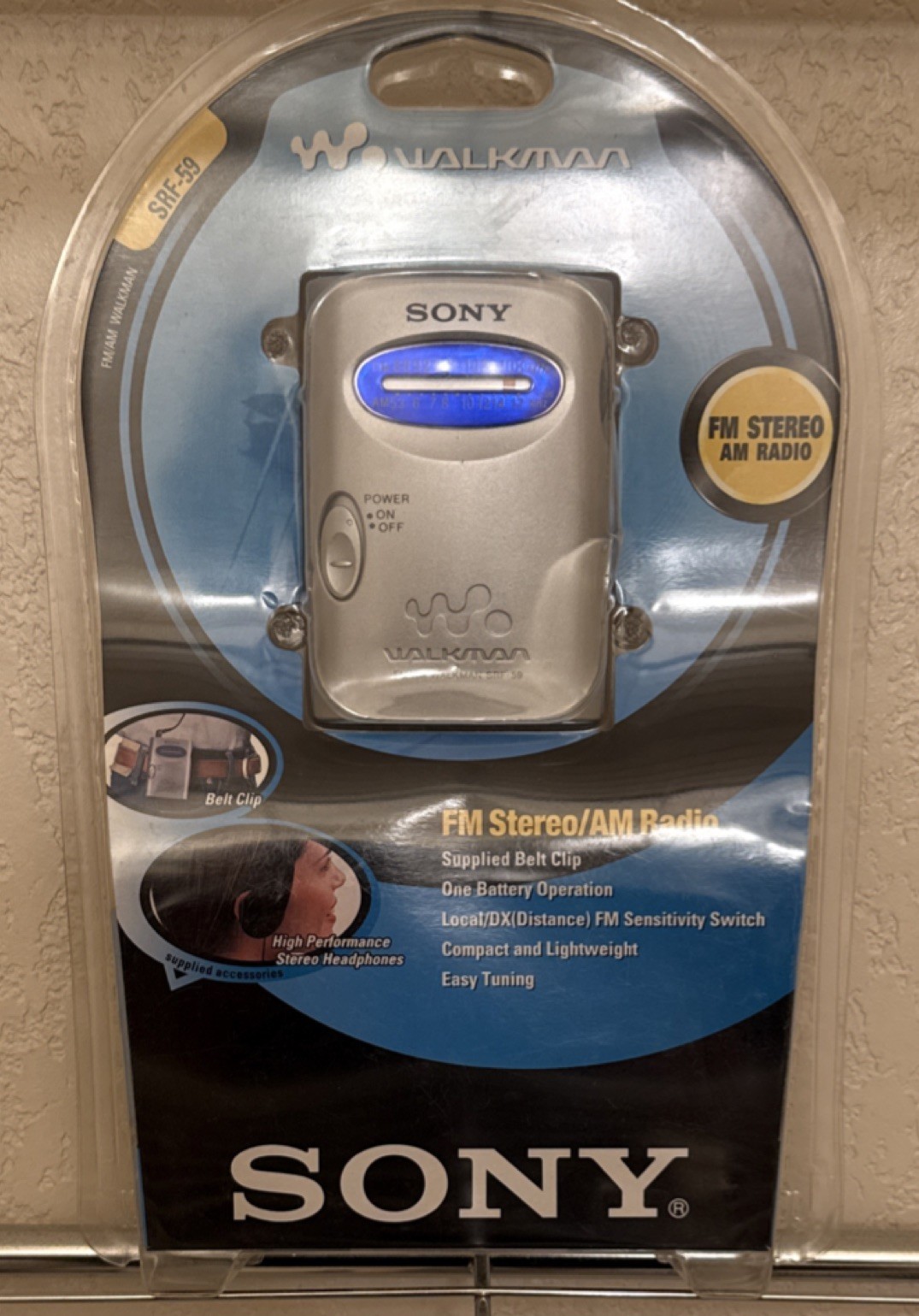 как выглядит Vintage Sony SRF-59 FM Stereo/AM Walkman Radio with Headphones Belt Clip фото