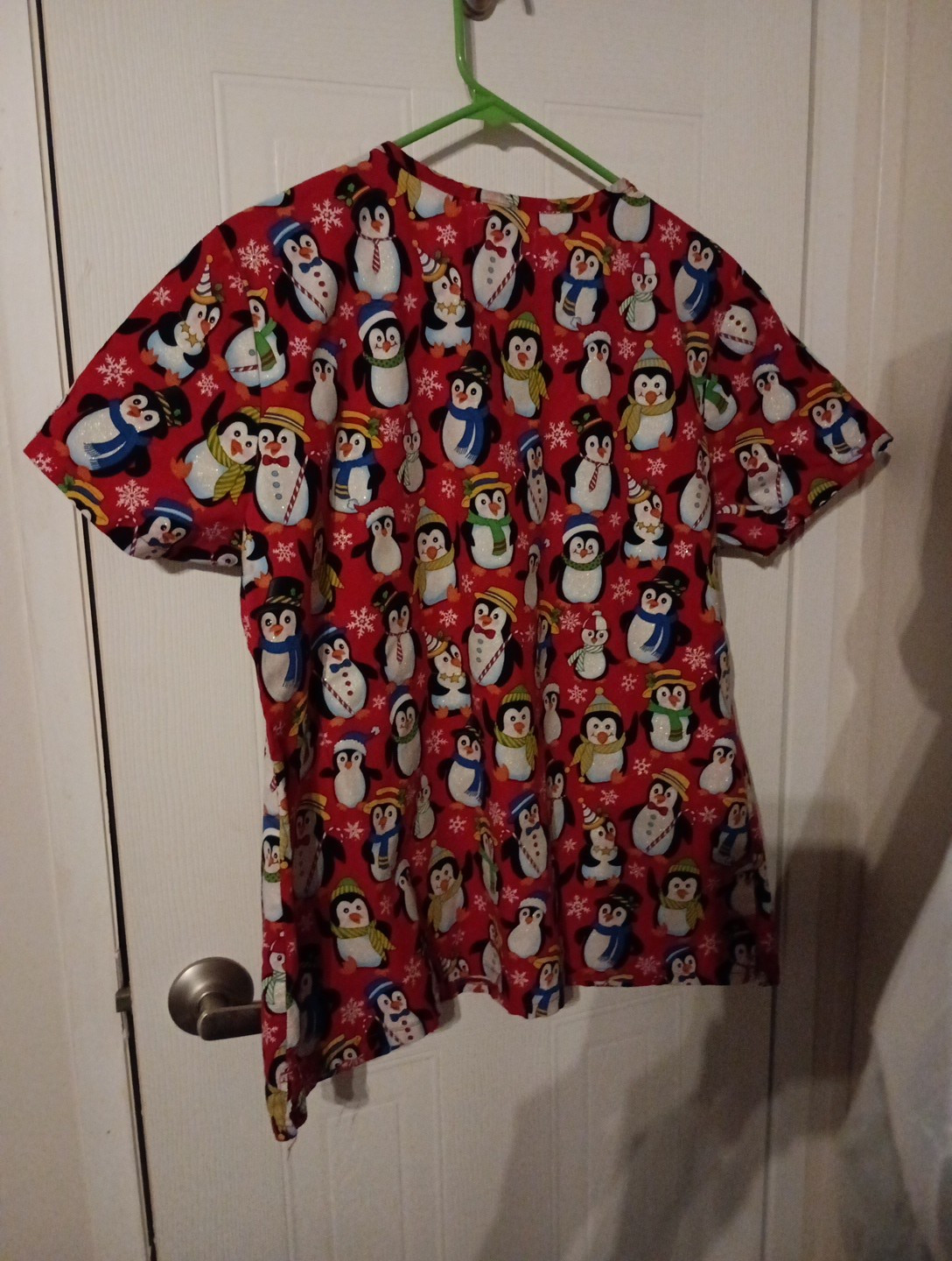 Christmas Scrub Top size XL Penguins Holiday Hats Candy Canes Winter sparkle