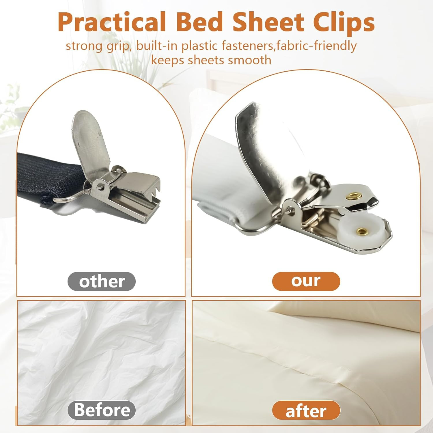 4PCS Bed Sheet Straps with Metal Clips, Adjustable Elastic Fitted Sheet Holders
