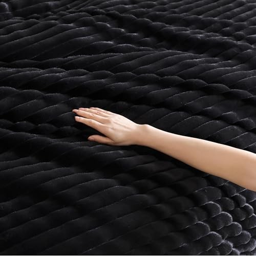 Comforter Set Ultra Soft Plush Fleece Bed Sets, Fluffy Warm Queen Black