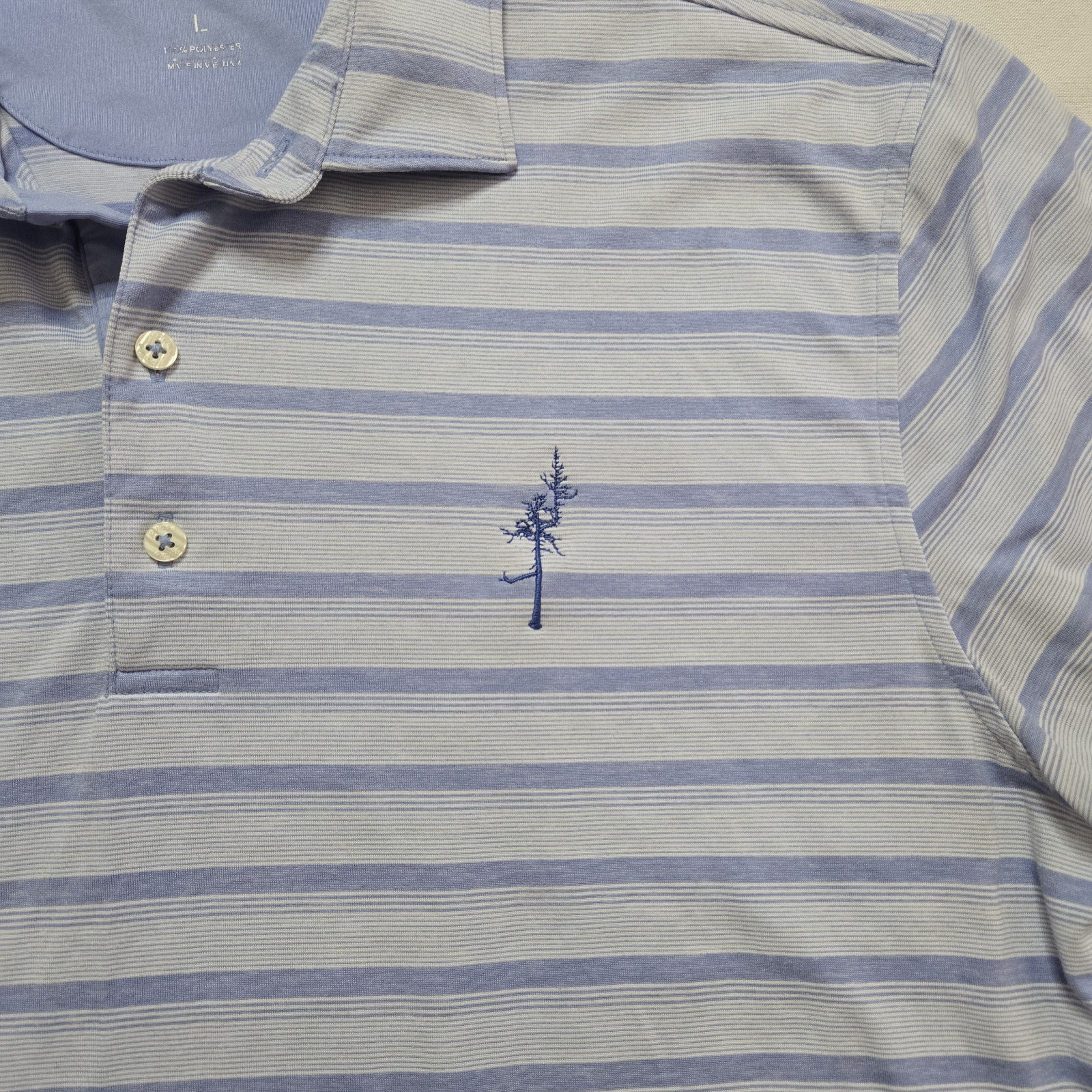 Johnnie O Polo Shirt Mens Large Blue White Striped Stretch Golf Performance