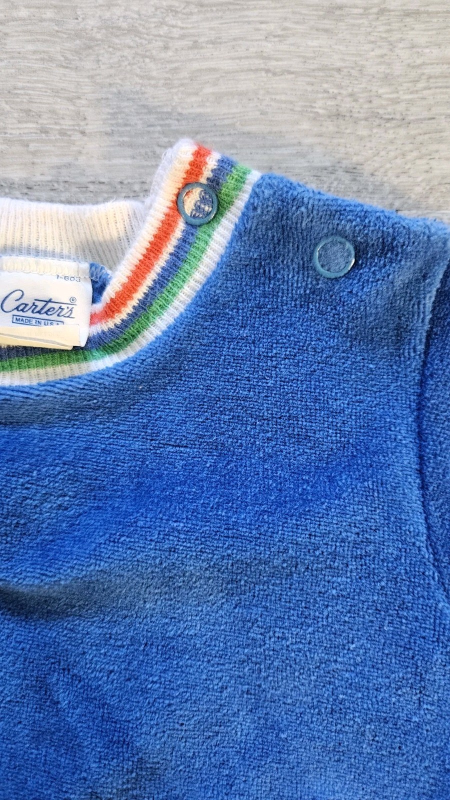 Carter's Vintage Blue Terry cloth Bodysuit Stripes Snaps Size 18 Months