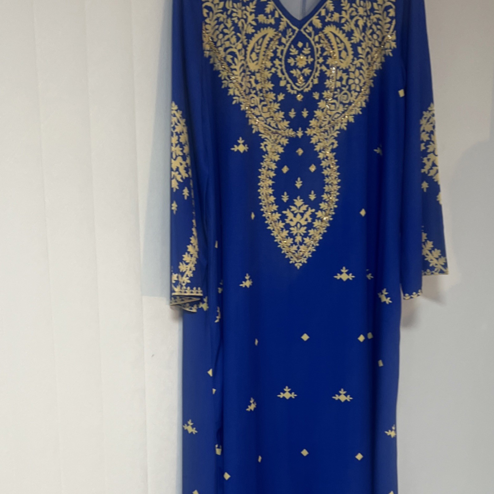 как выглядит Blue Kurta Gold Embroidery Long Sleeve Indian Pakistani Tunic for Women фото