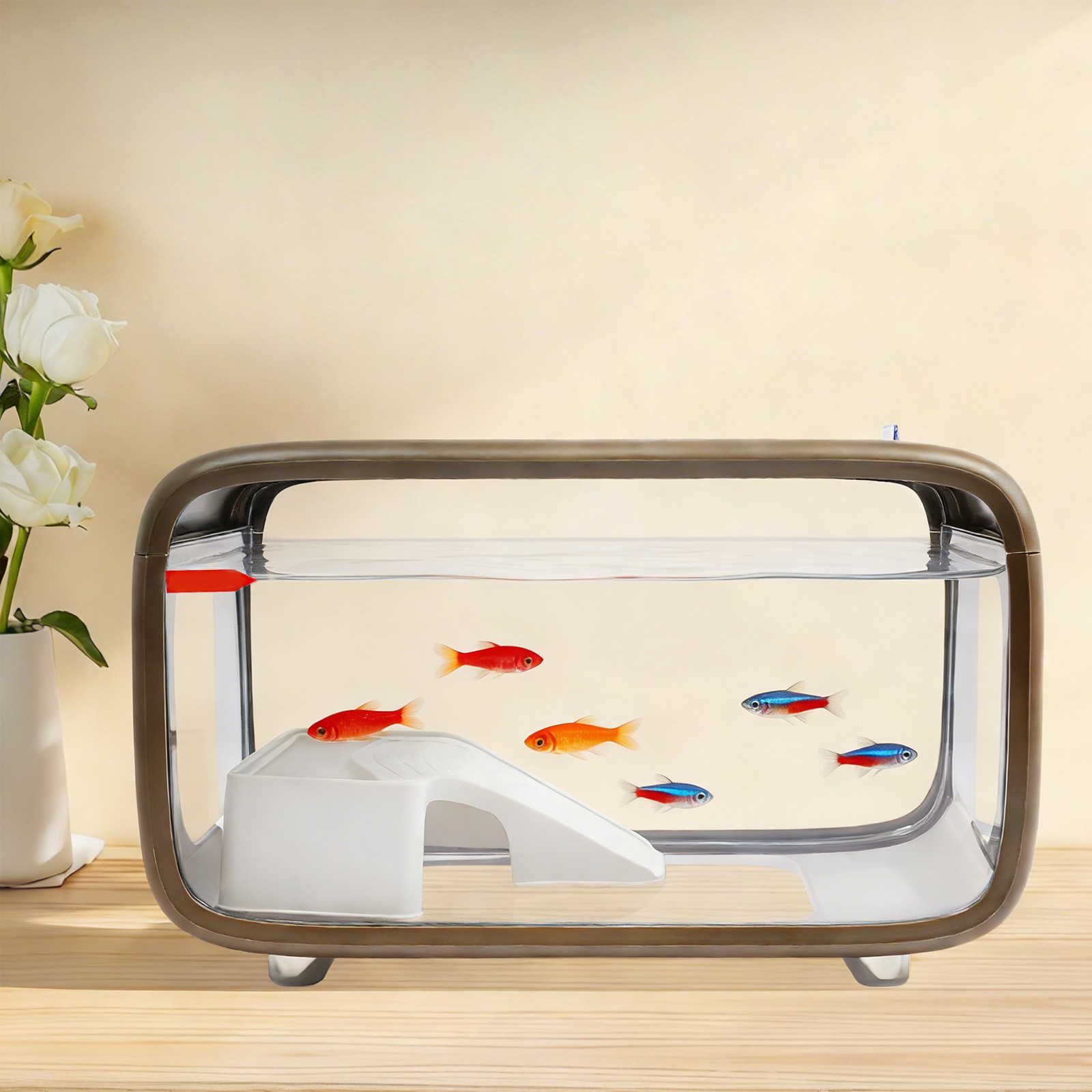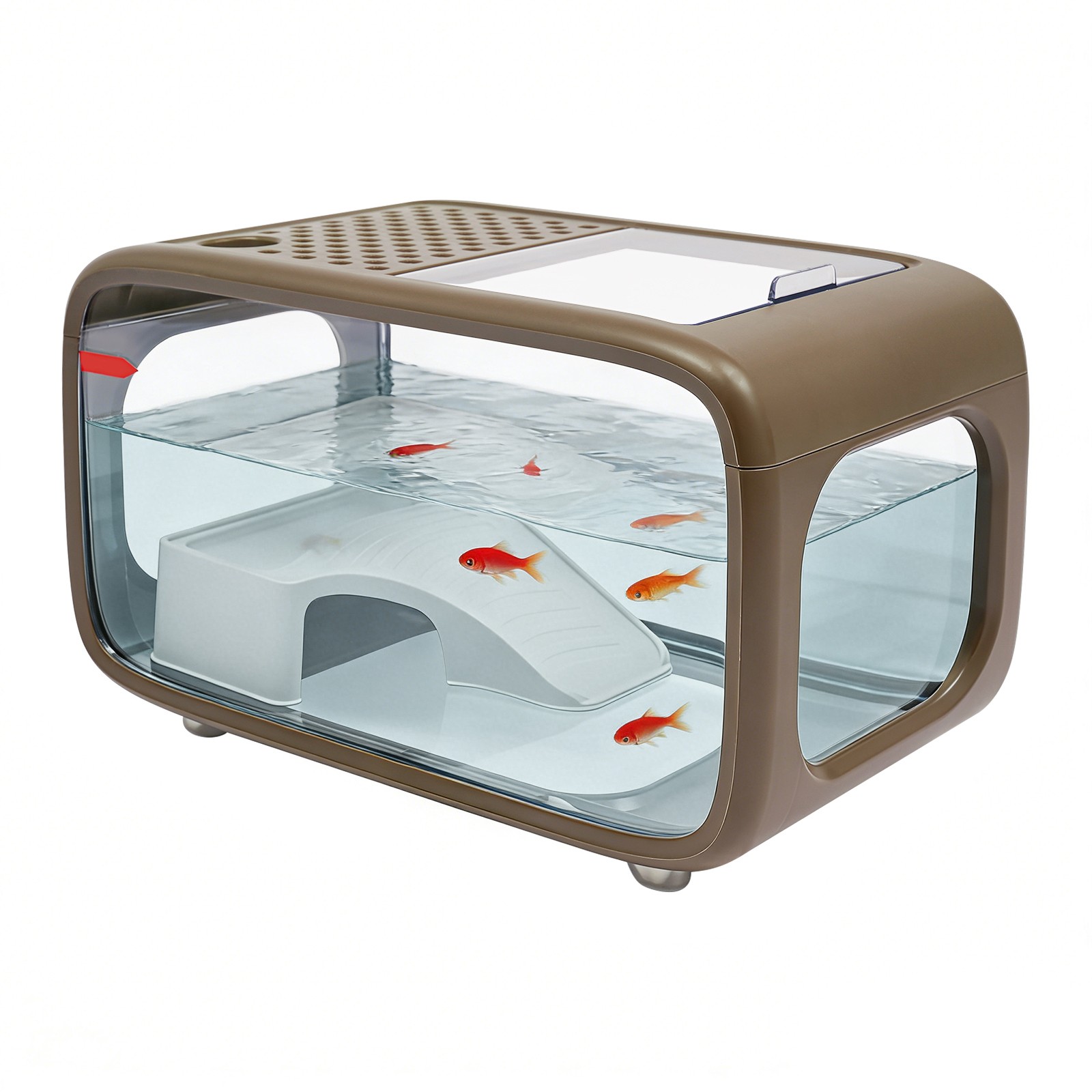 12 L/3.17 Gal Desktop Fish Tank Landscape Aquarium, Fish Bowl w/Top Feeding Hole