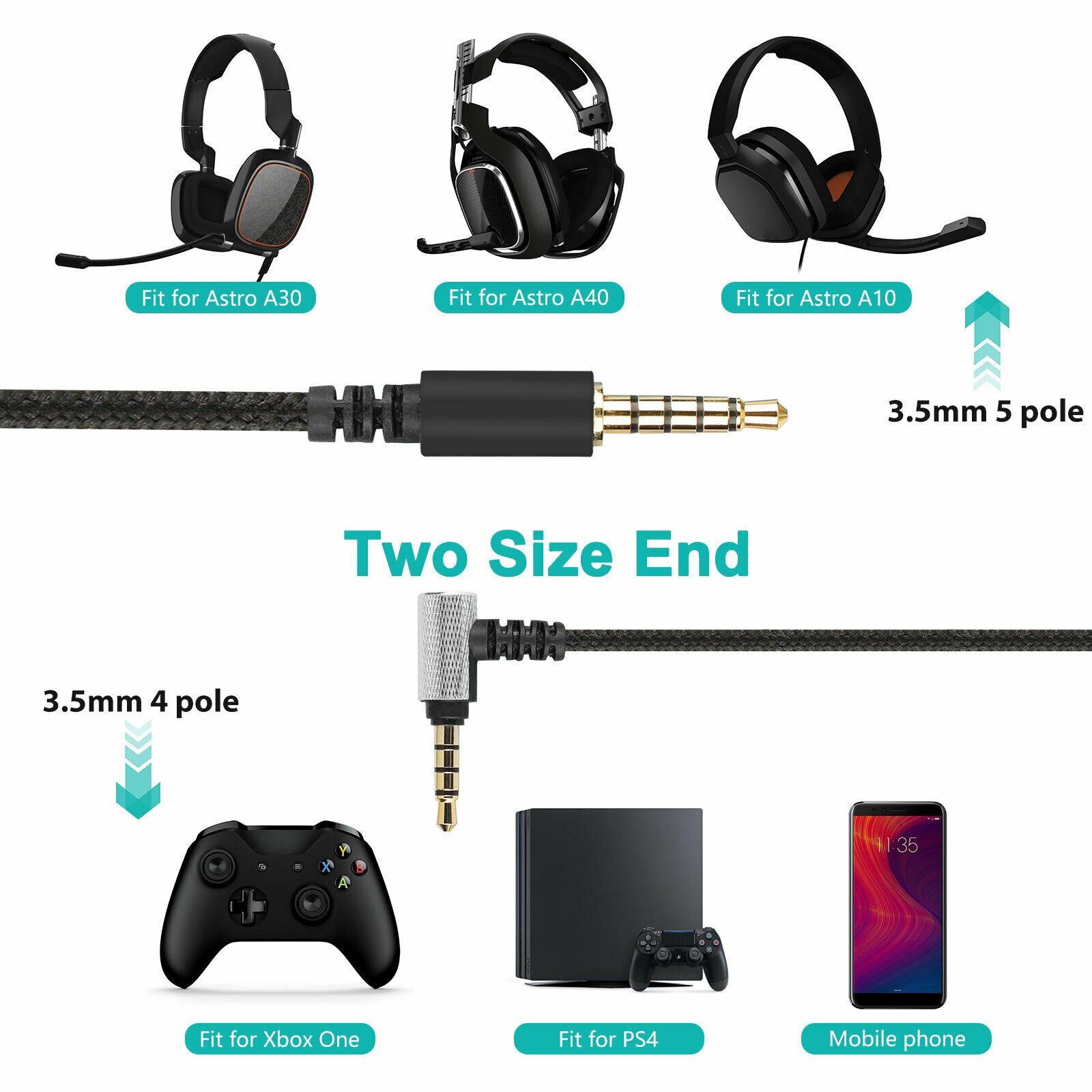 как выглядит 6.5ft 3.5mm Audio Cable Cord for Astro A10/A40/A30/A50/G433 Gaming Headset b фото