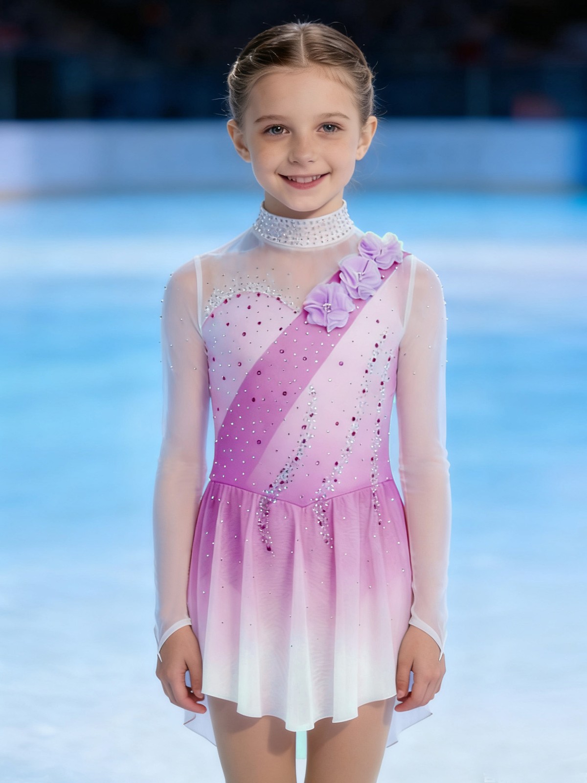 Kids Girls Long Sleeve Figure Ice Skating Dress Ballet Dance Leotards Costume