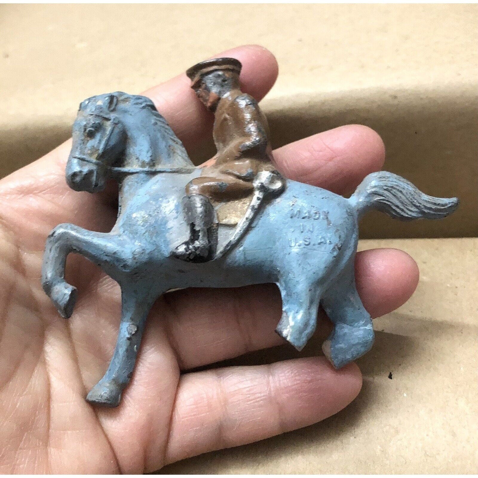 Cast Iron Figurine Calvary Officer on Horse Vintage Collectible Replacement.