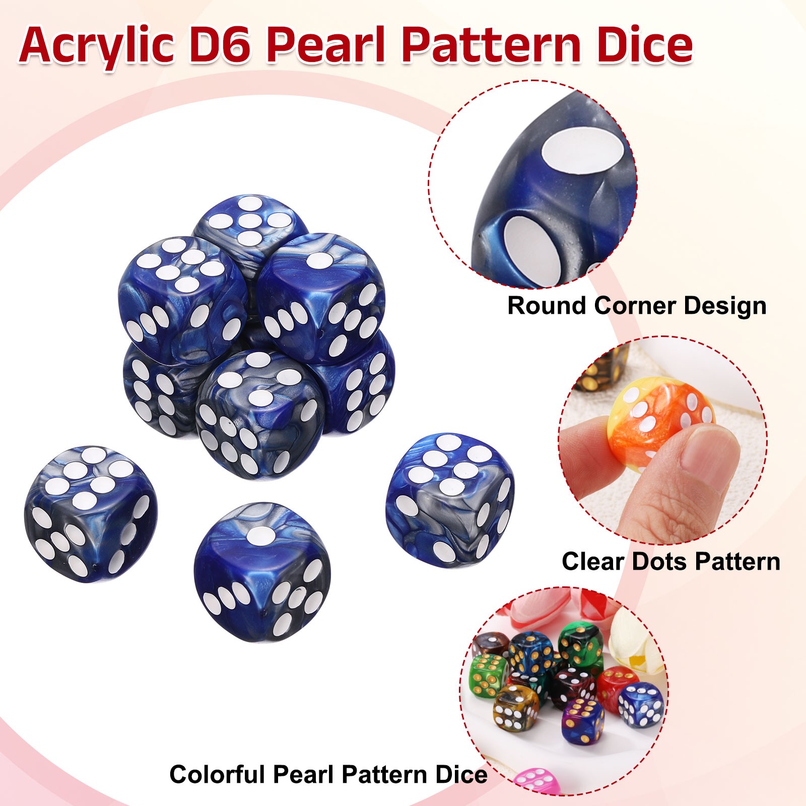 как выглядит 10Pcs 6 Sided Colored Standard Dice, Acrylic D6 Game Dice, Blue/Silver, White фото