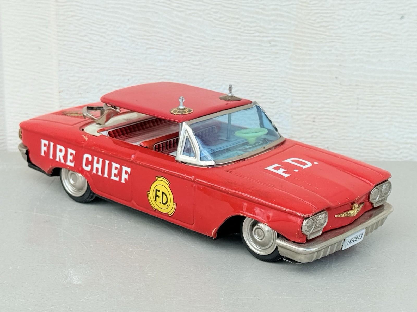 Vintage 1950's Fire Chief Tin Friction Car Chiko Japan