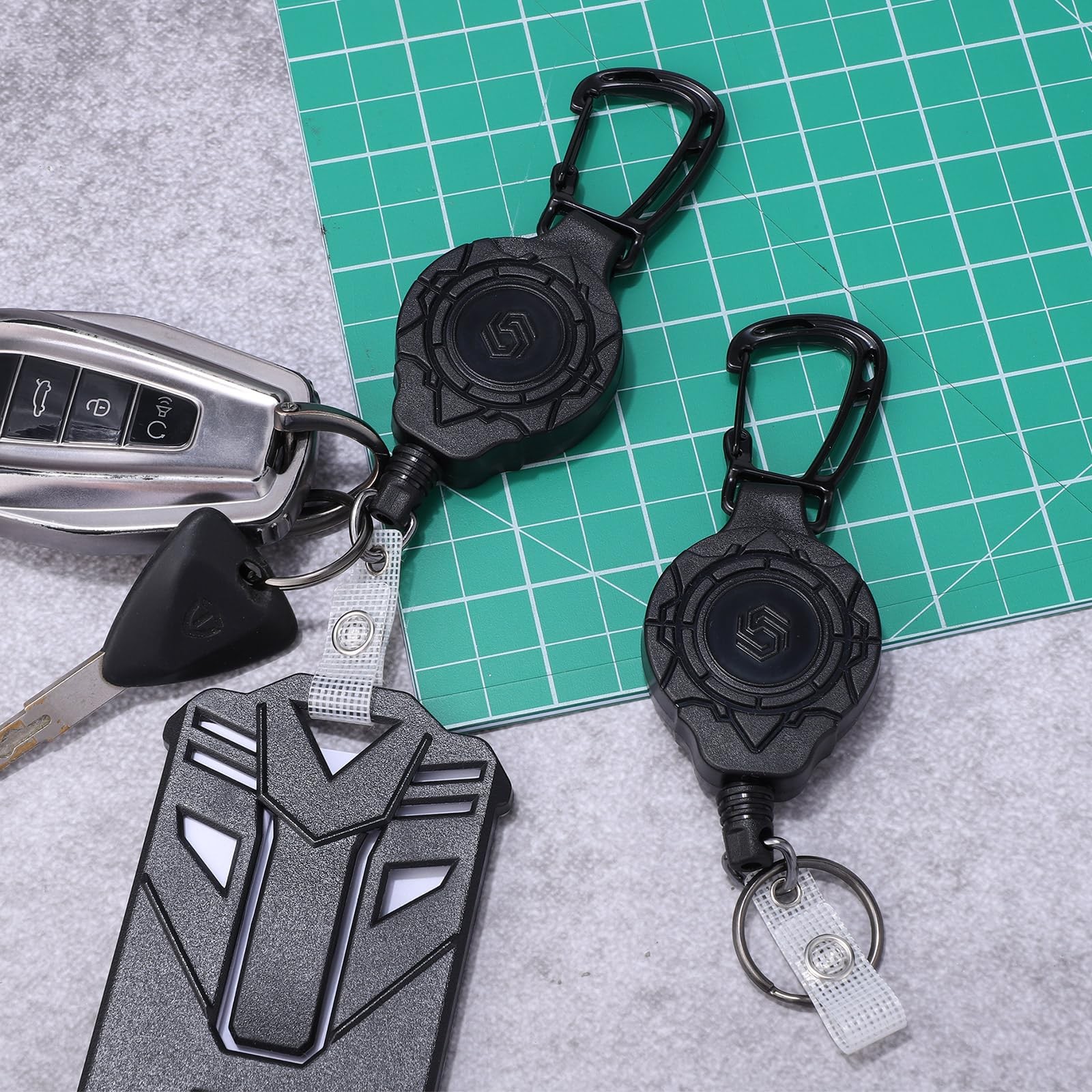 как выглядит 2 Pack Retractable Keychain with ID Card Holder, Heavy Duty Carabiner Badge Hold фото