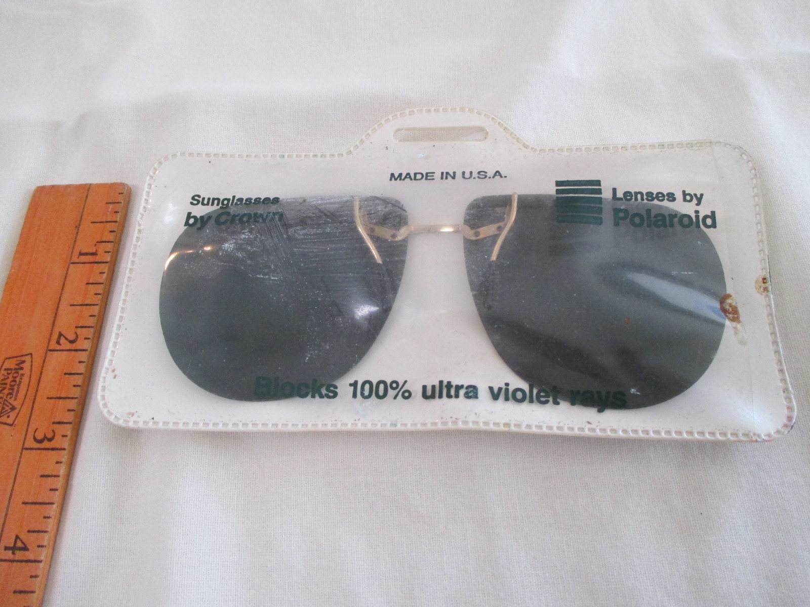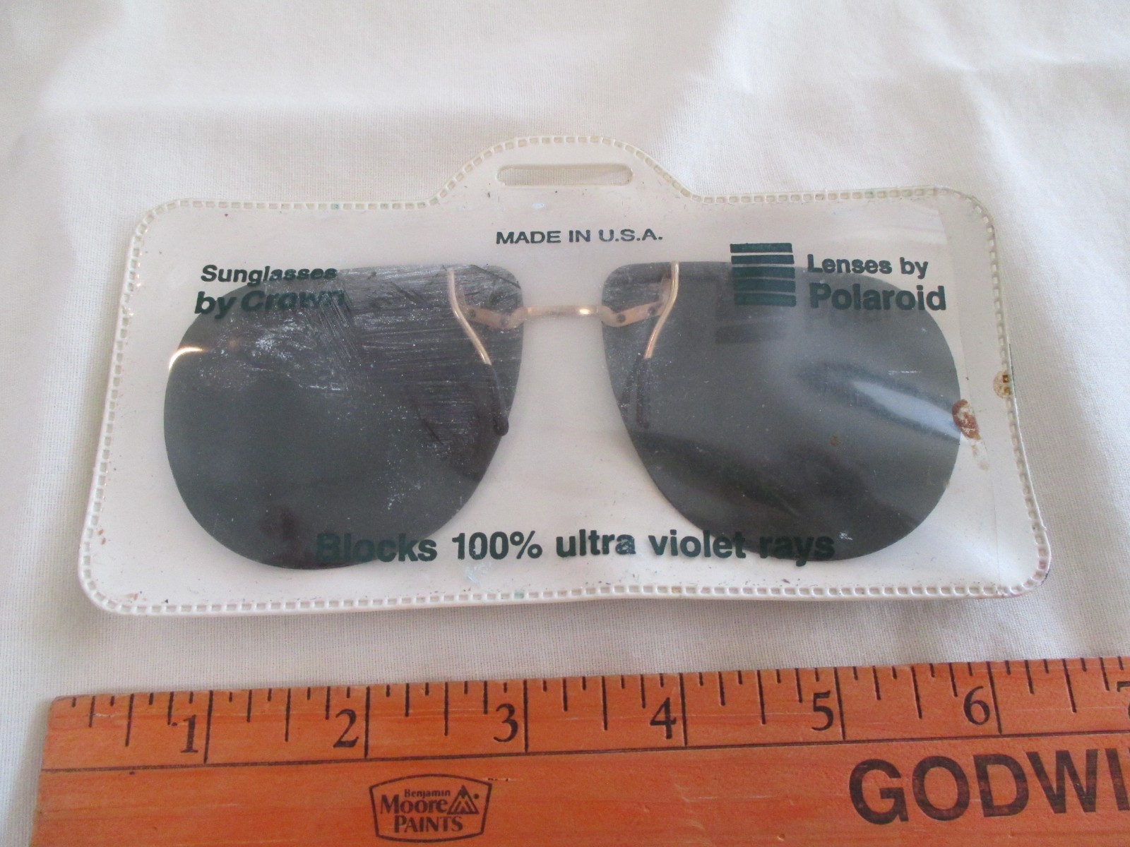 как выглядит Vintage Polaroid Large Tinted Clip-on Crown Sun Glasses with Case фото