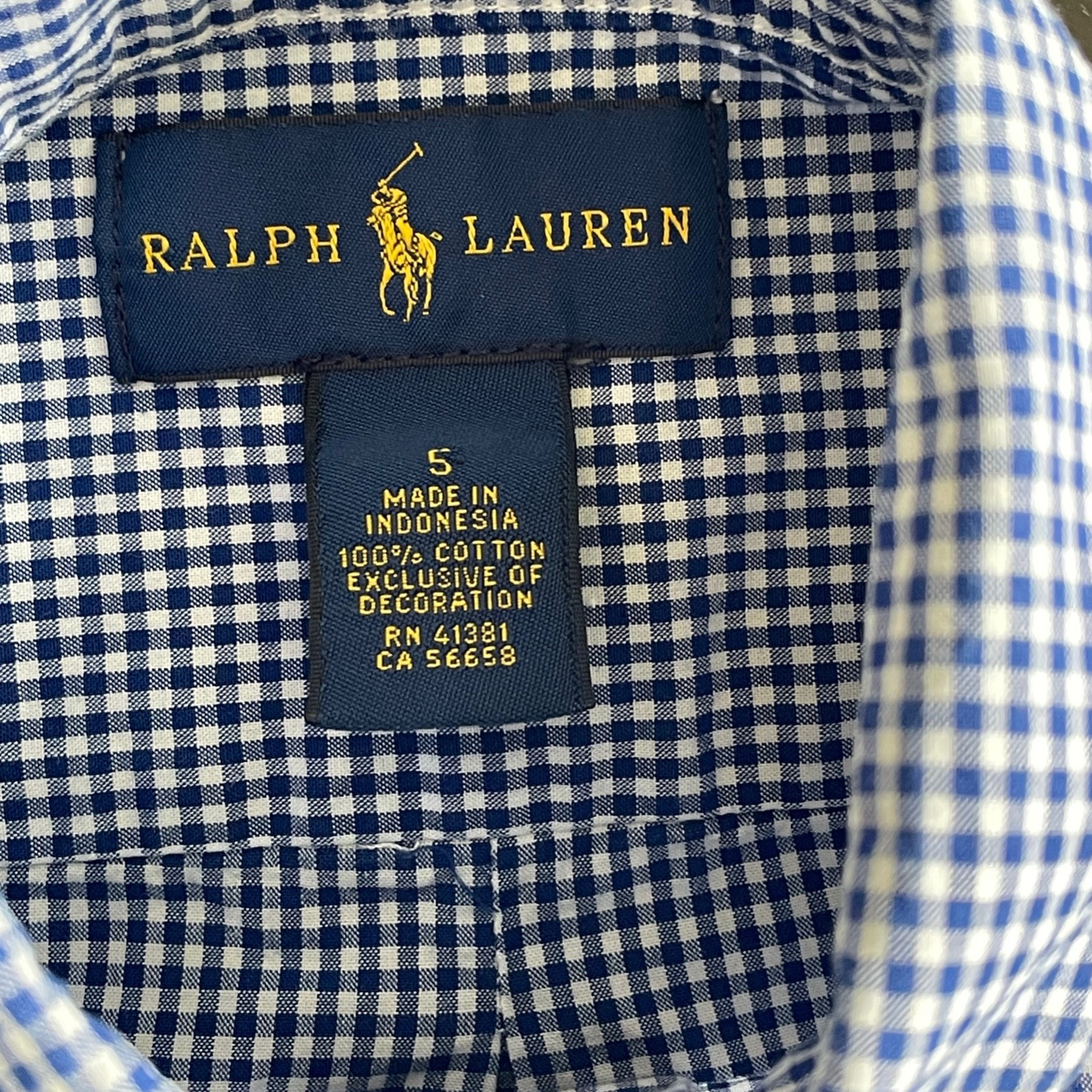 Ralph Lauren Boys Blue White Gingham Check Short Sleeve Button Down Shirt Size 5