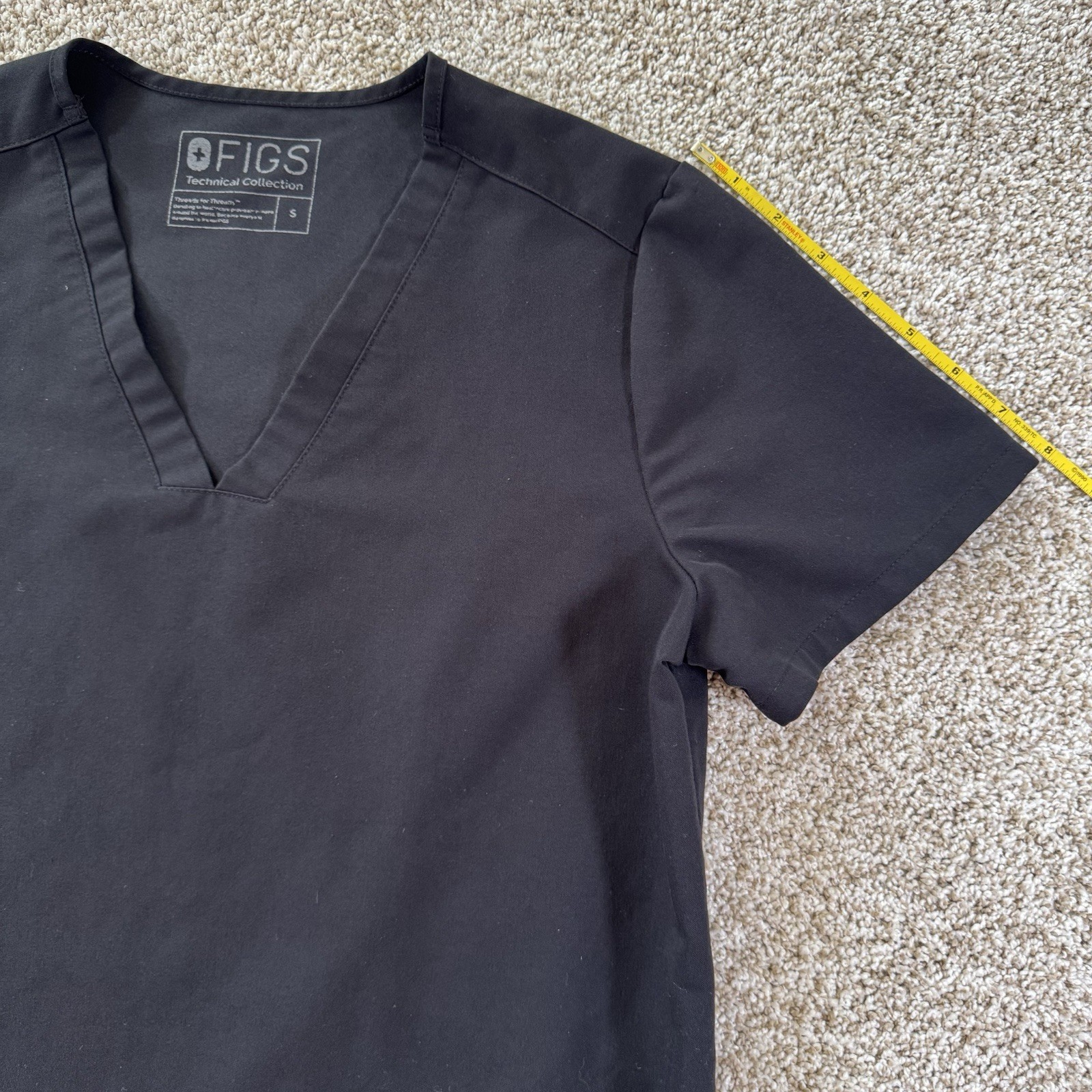 как выглядит Figs Womens Black Casma Size S Short Sleeve Scrub Top V Neck фото