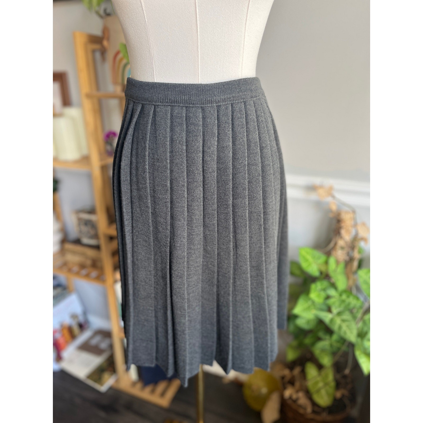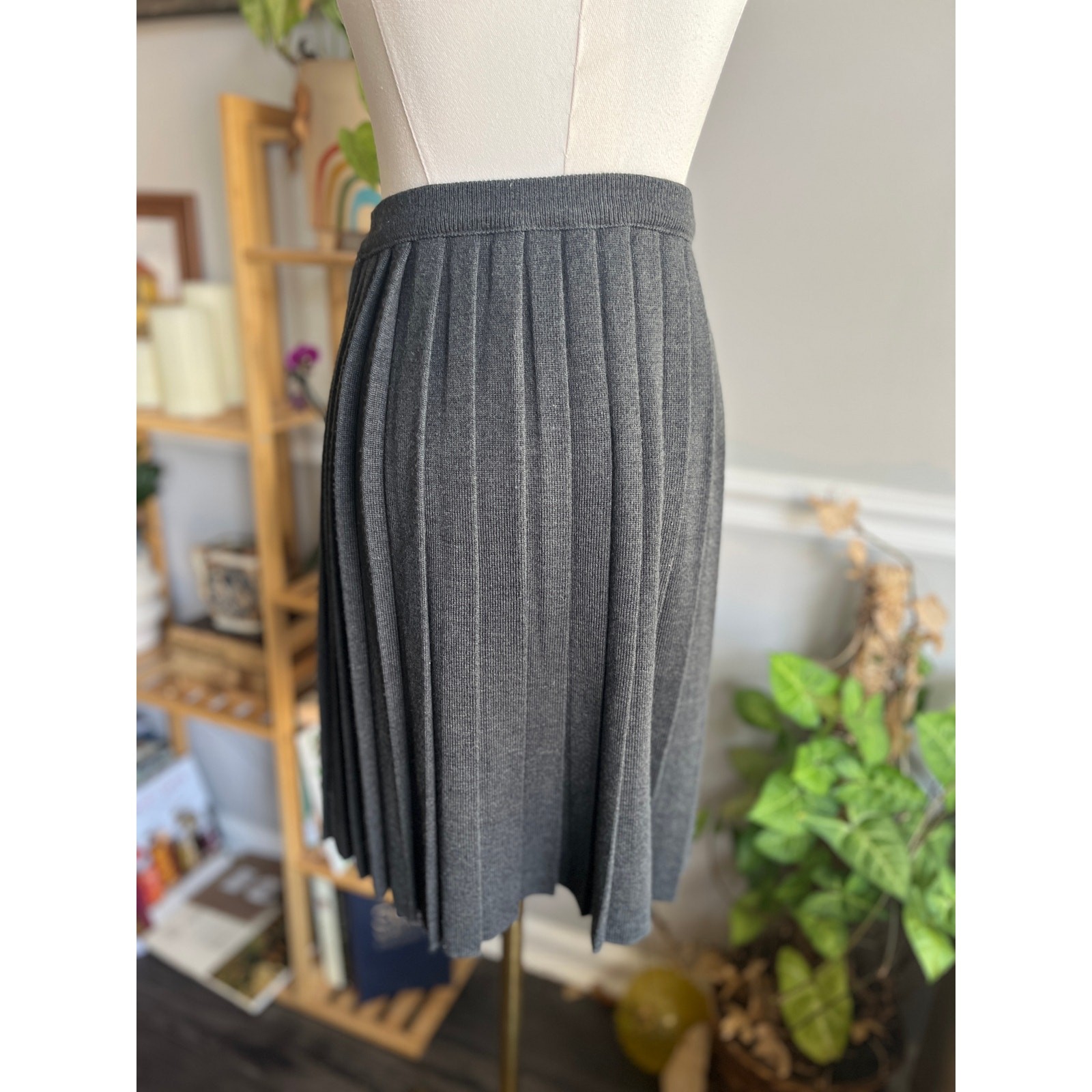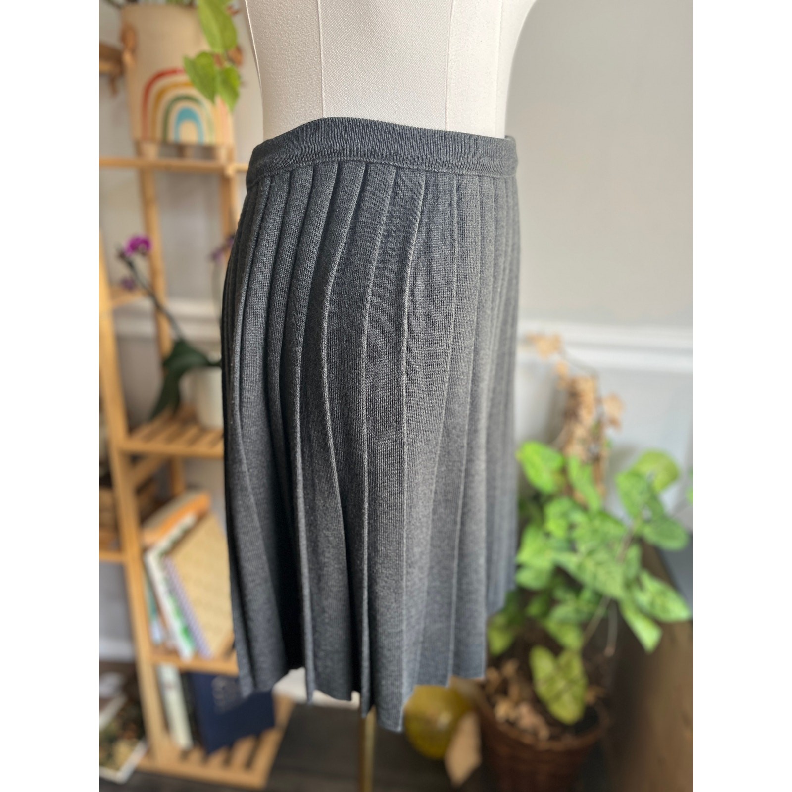 Vintage 90s Gray Merino Wool Skirt Pleated Minimal Knit Size Small