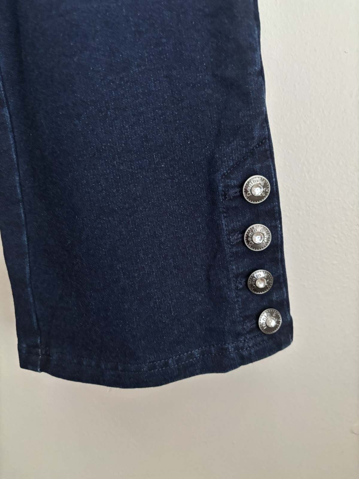 как выглядит Denim Co. Comfy Knit Slim Leg Jean Bling Buttons 18W Dark Wash Pull-On Stretch фото