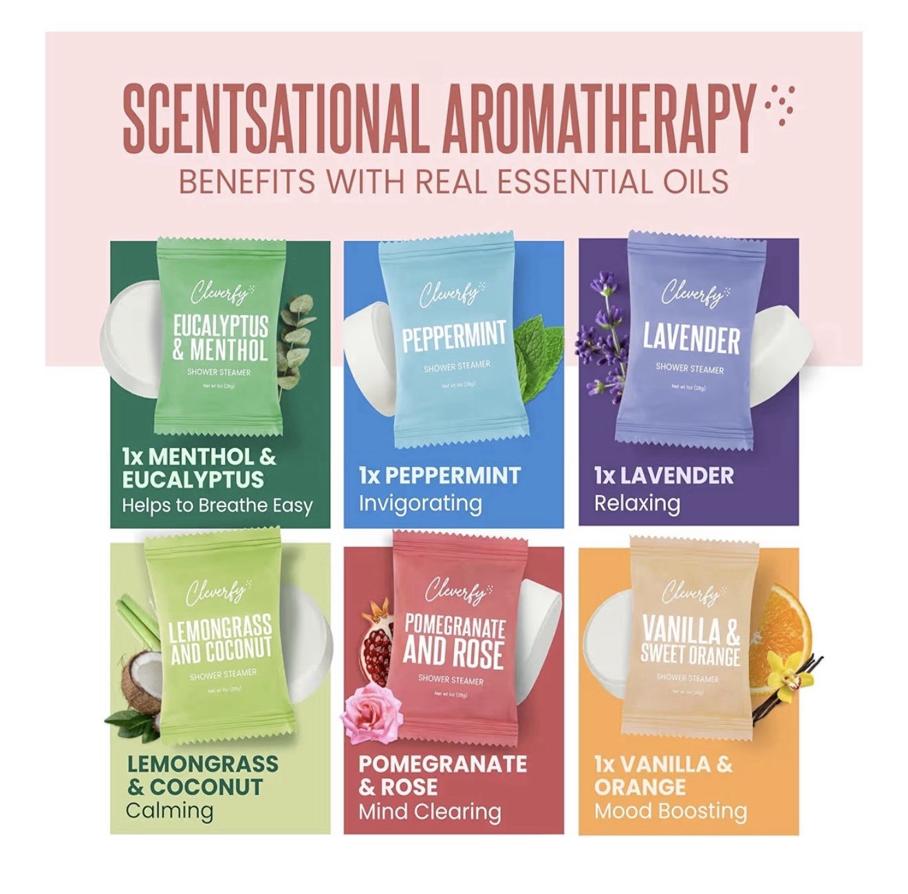 Cleverfy Shower Steamers Aromatherapy Variety Pack of 6 with Essential Oils NEW