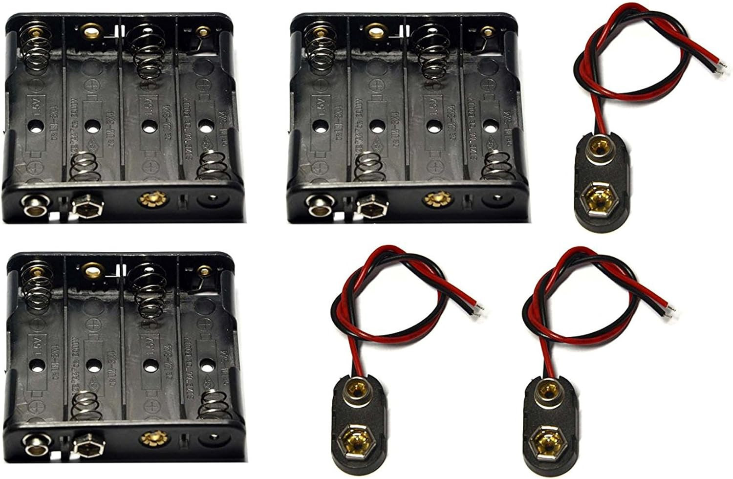 3 Pcs 4 X 1.5V 6V AA Battery Holder Leads with 3 Pcs 9V I Type Snap Connector