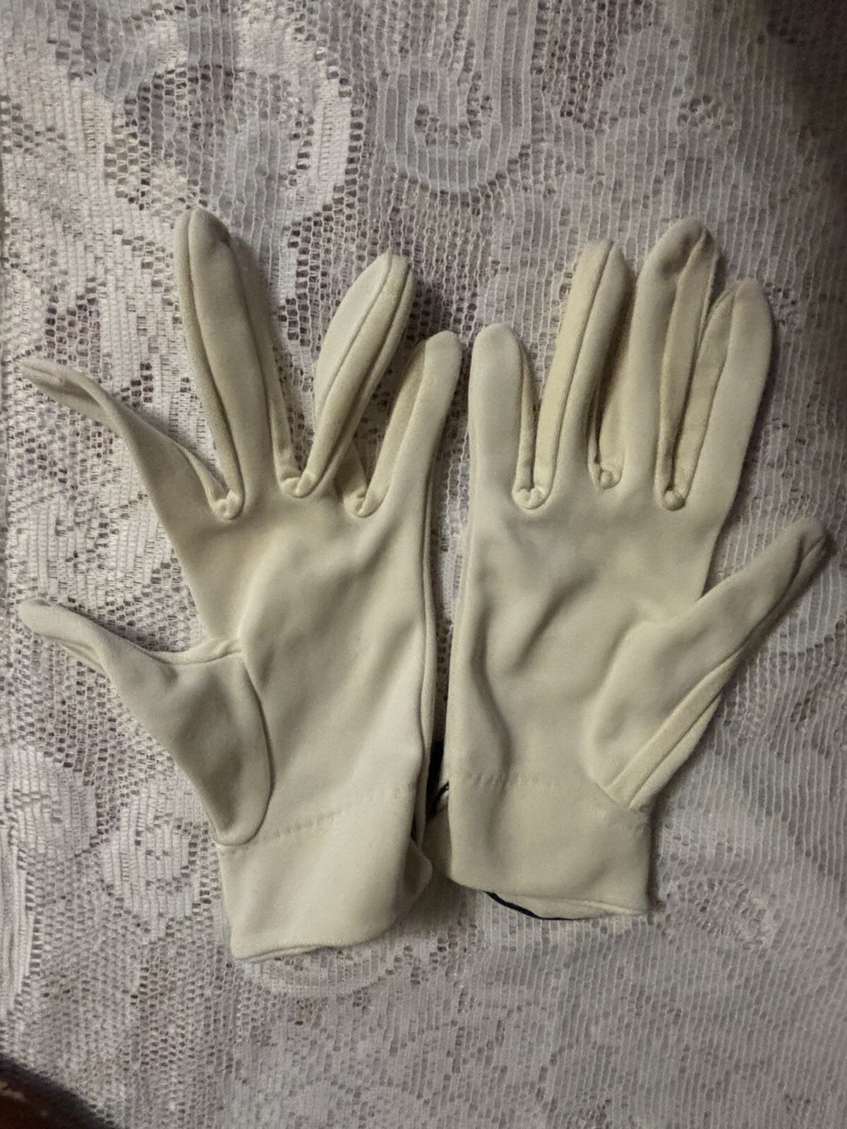 Vtg White Wedding Short Gloves Prom Unisex Black Trim Bow Sz 8