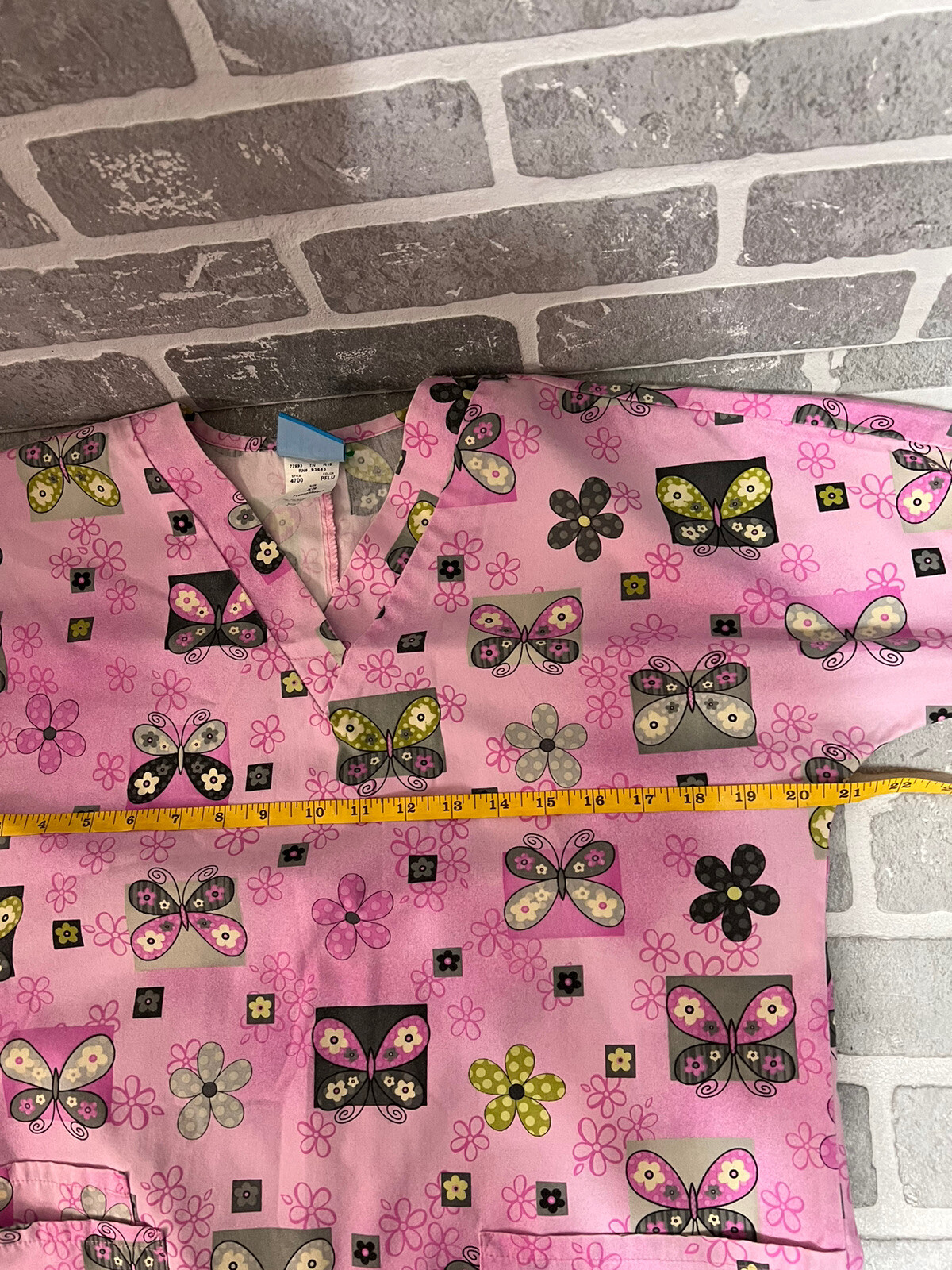 как выглядит Scrub Top HQ Scrubs Women s XS Pink Butterfly Print фото