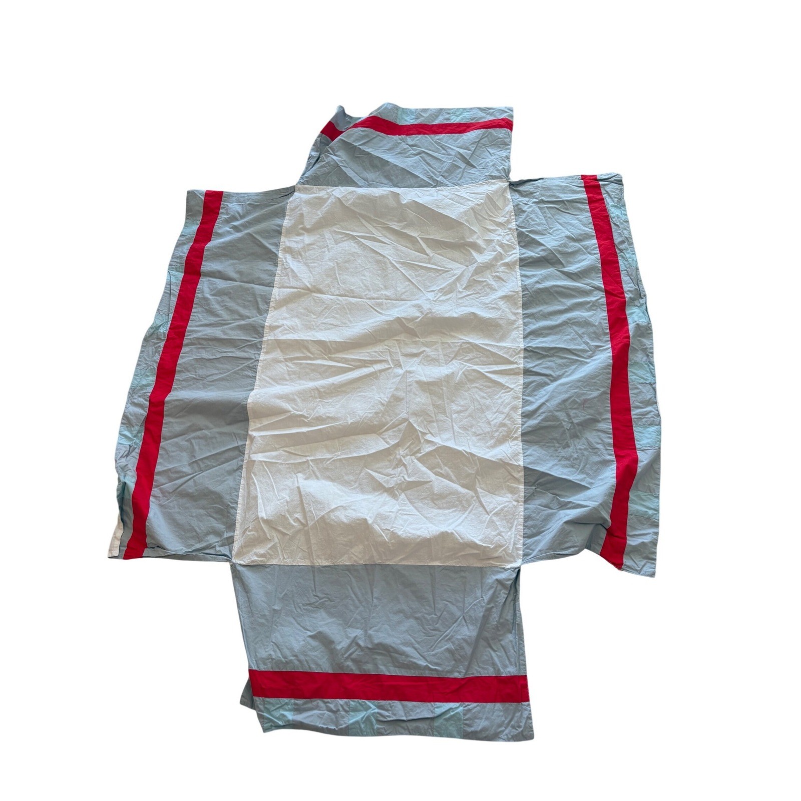 The Land of Nod Kids Cotton Crib Skirt Grey White Blue Red Stripe Colorblock