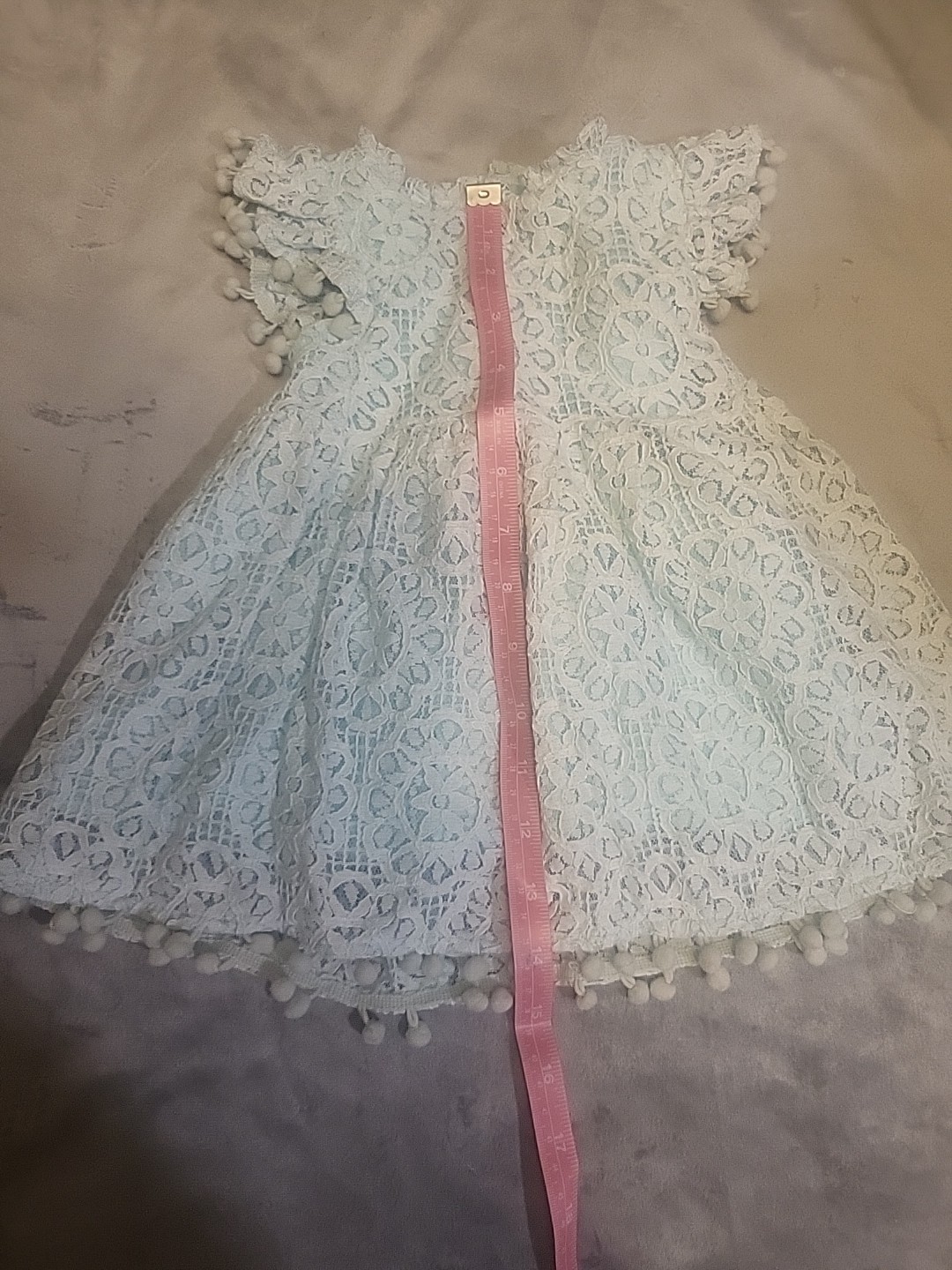 2 bunnies lace overlay pompom dress baby 6-12 months blue party dress