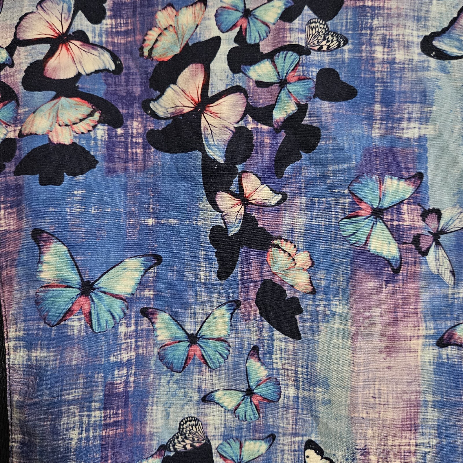Koi Stretch Women's Size XS Purple Scrub Top Butterfly Print 385PR Side Stretch