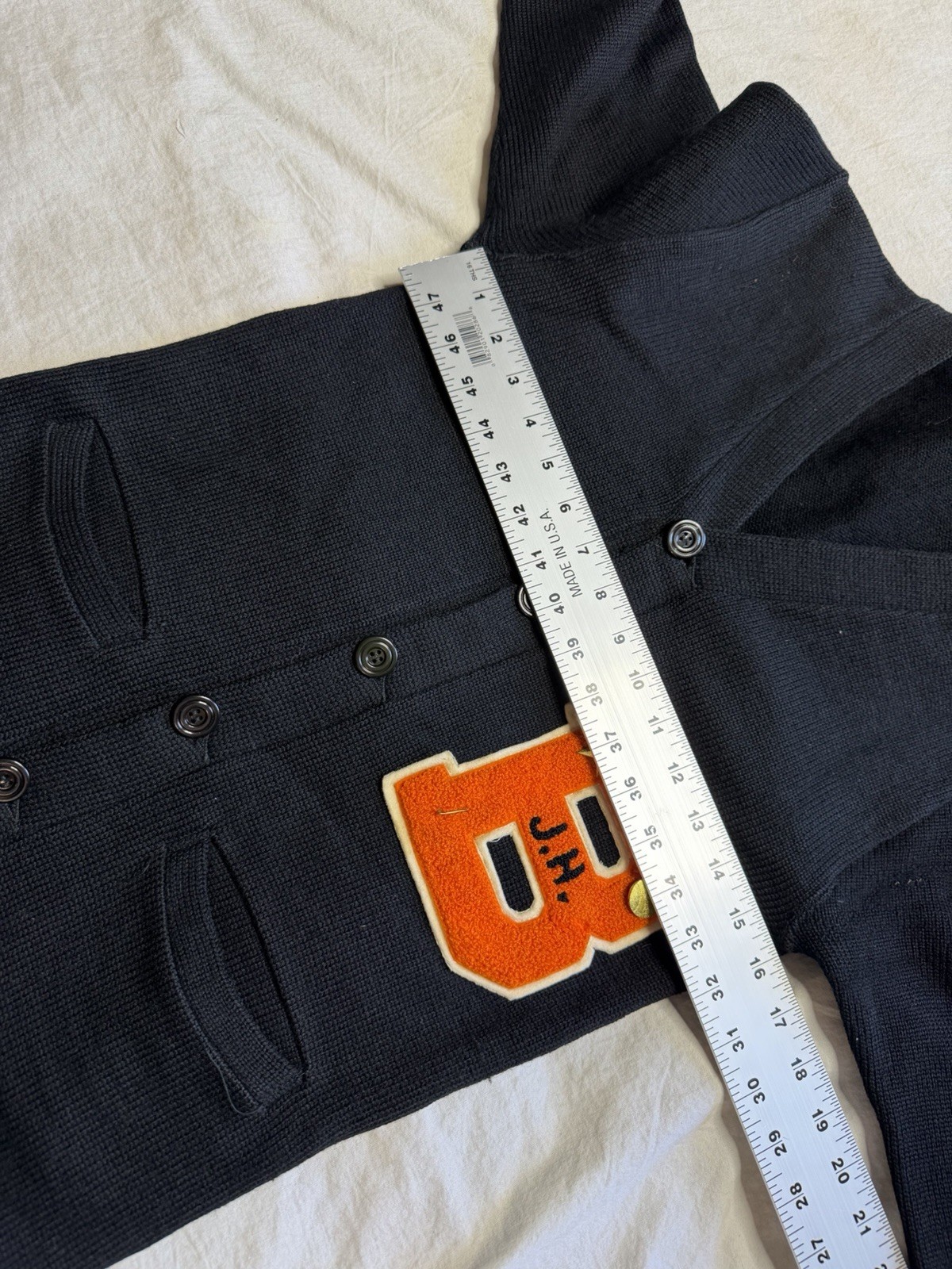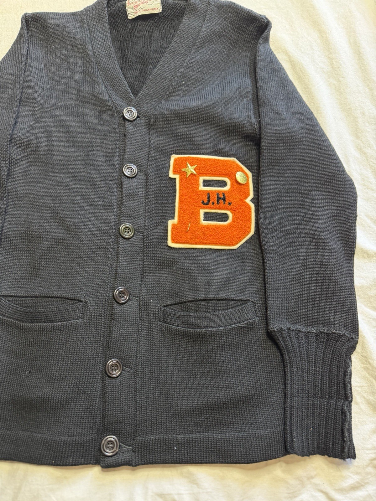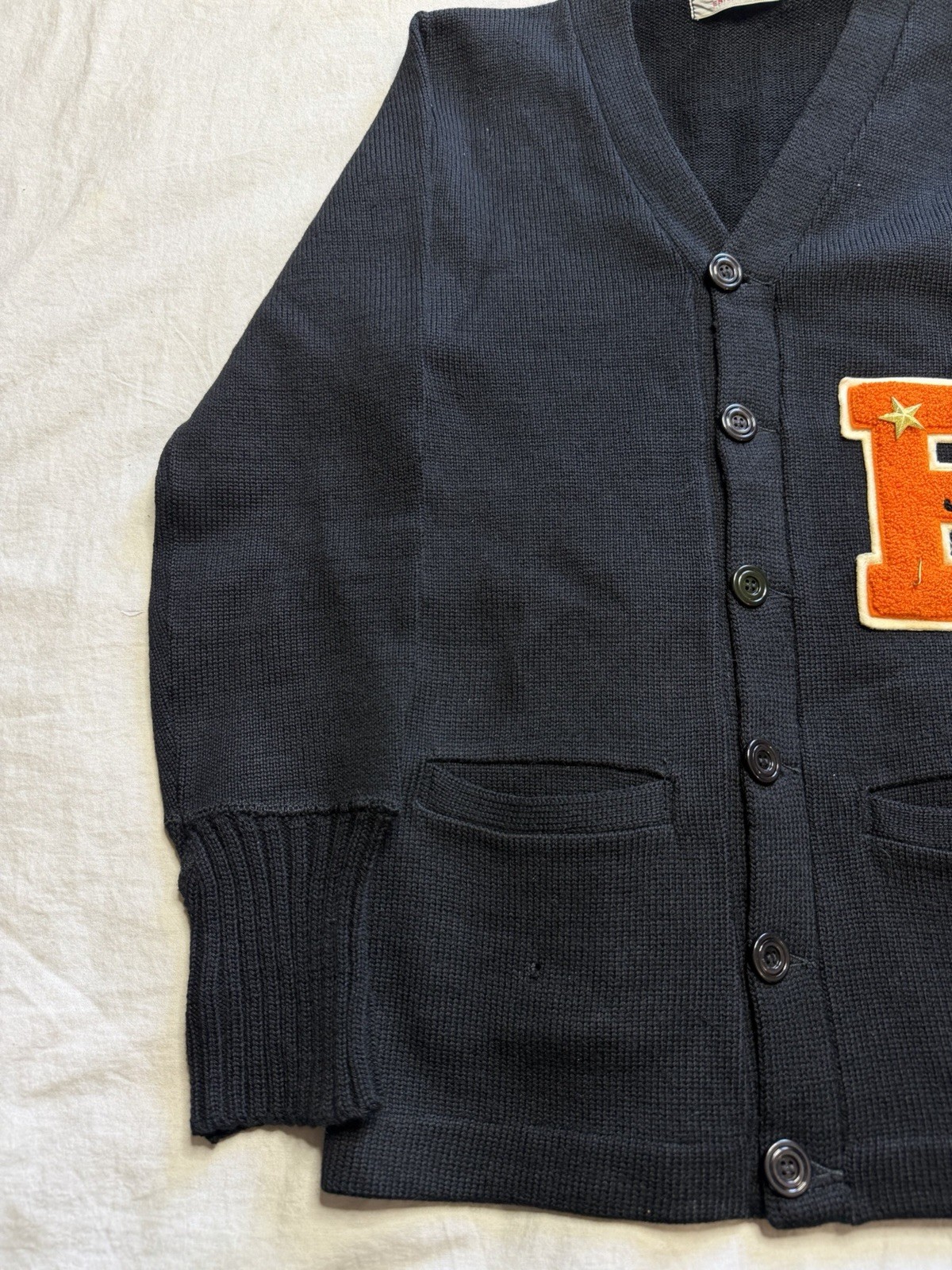 как выглядит Vintage Black Wool Cardigan Varsity Award Knit Sweater 1950s 50s Xs фото
