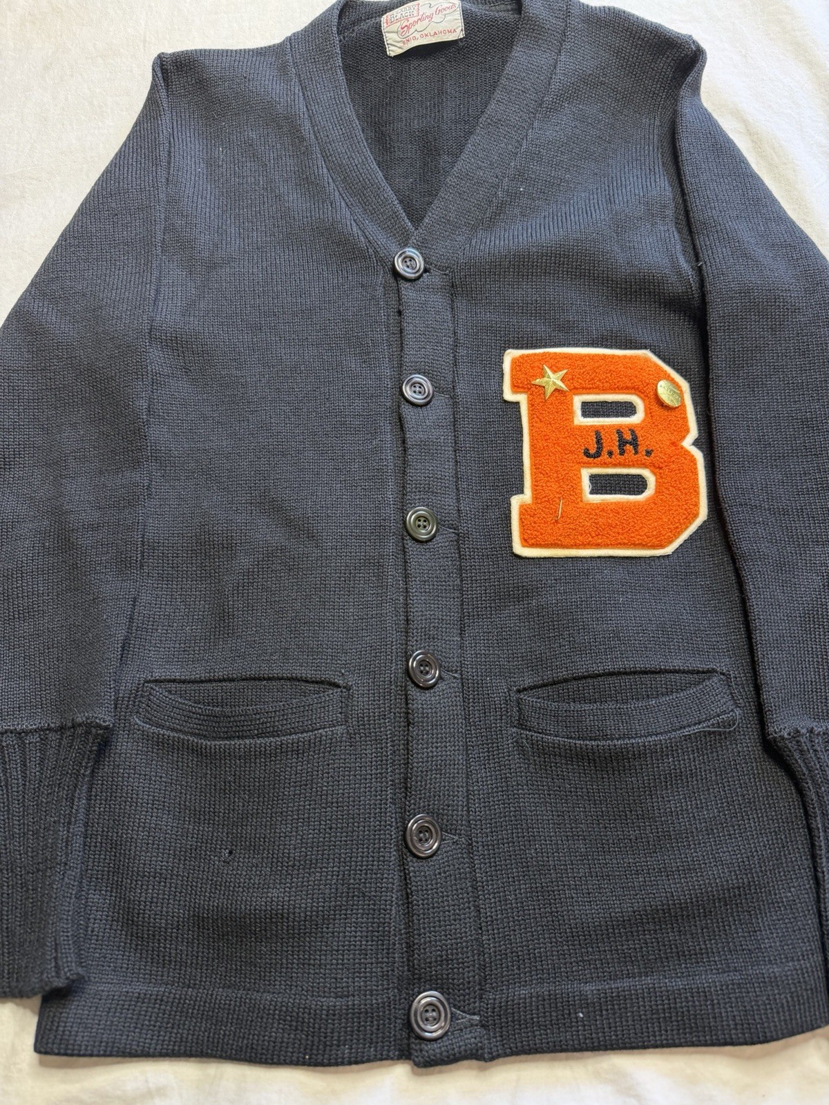 Vintage Black Wool Cardigan Varsity Award Knit Sweater 1950s 50s Xs