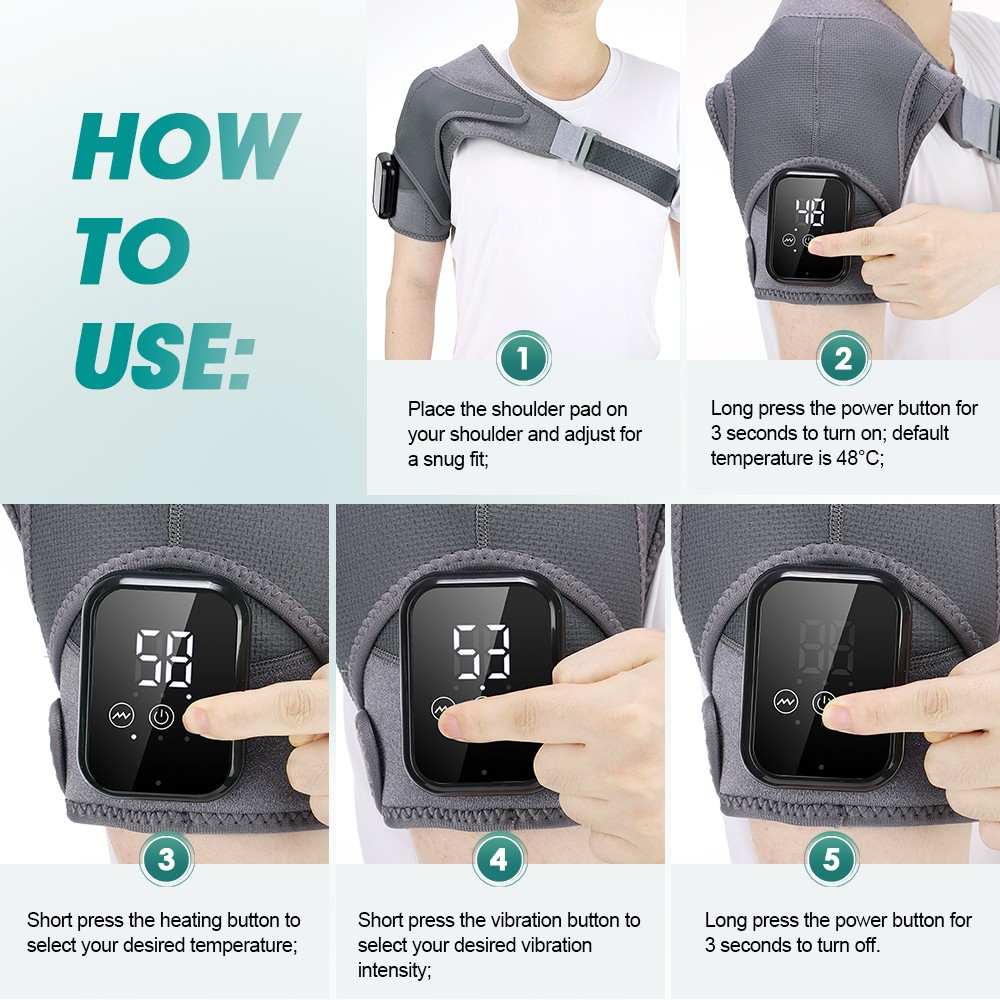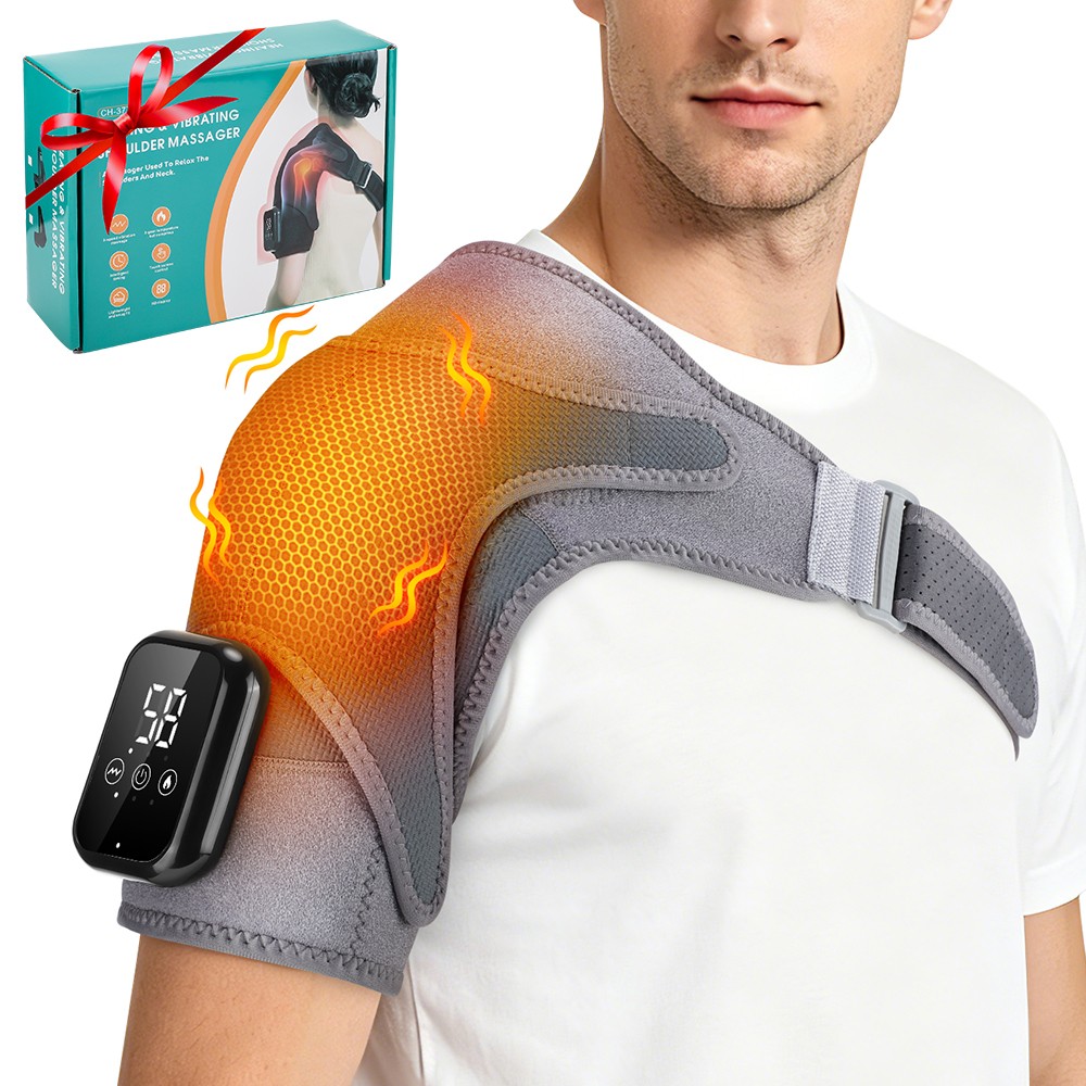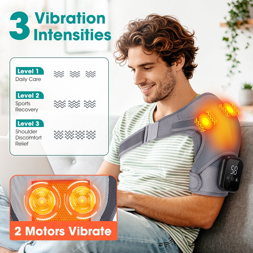 Cordless Shoulder Massager Pain Relief with 3 Heating 3 Vibration Modes Timer