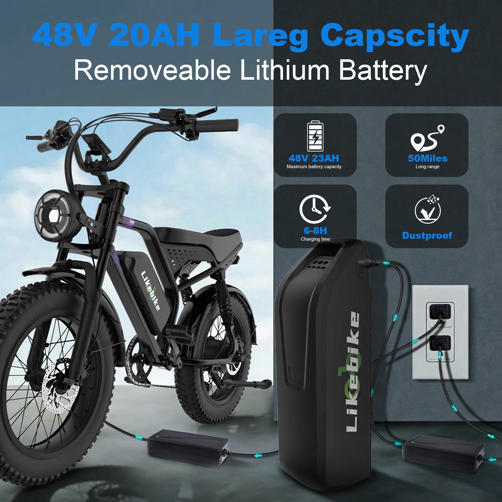 Battery: 48V 20AH Removable Battery