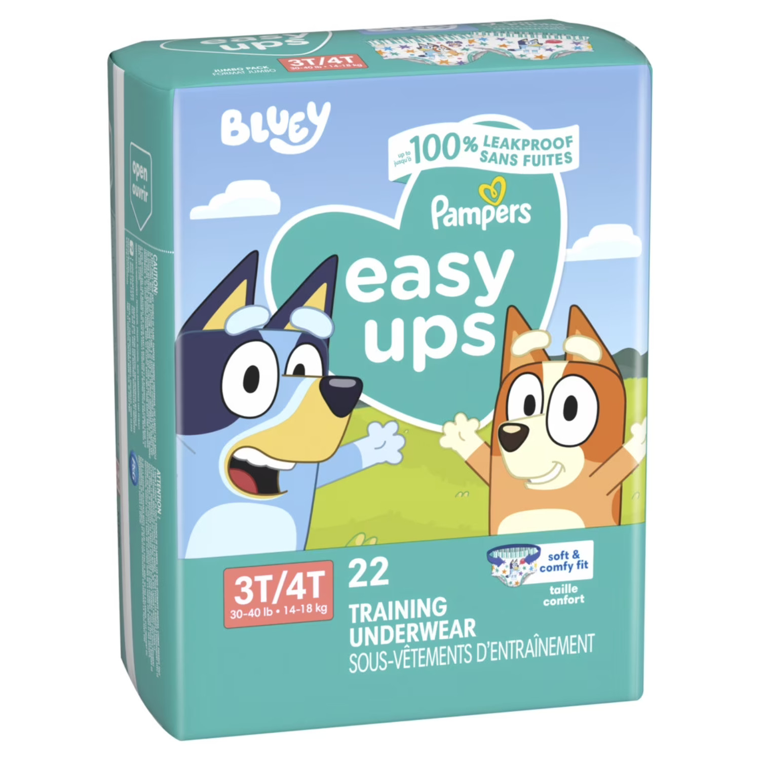 3 Pack Pampers Easy Ups Bluey Potty Training Pants Boys Size 3T-4T, 22 Count