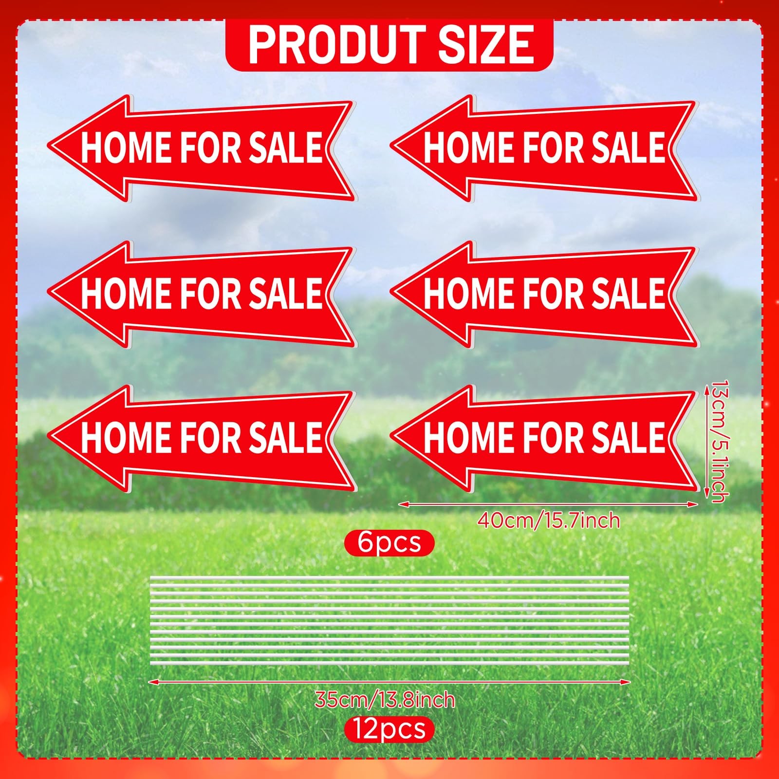6PCS Home for Sale Signs With Stakes - Red Directional Arrow Double Sided 16 ...