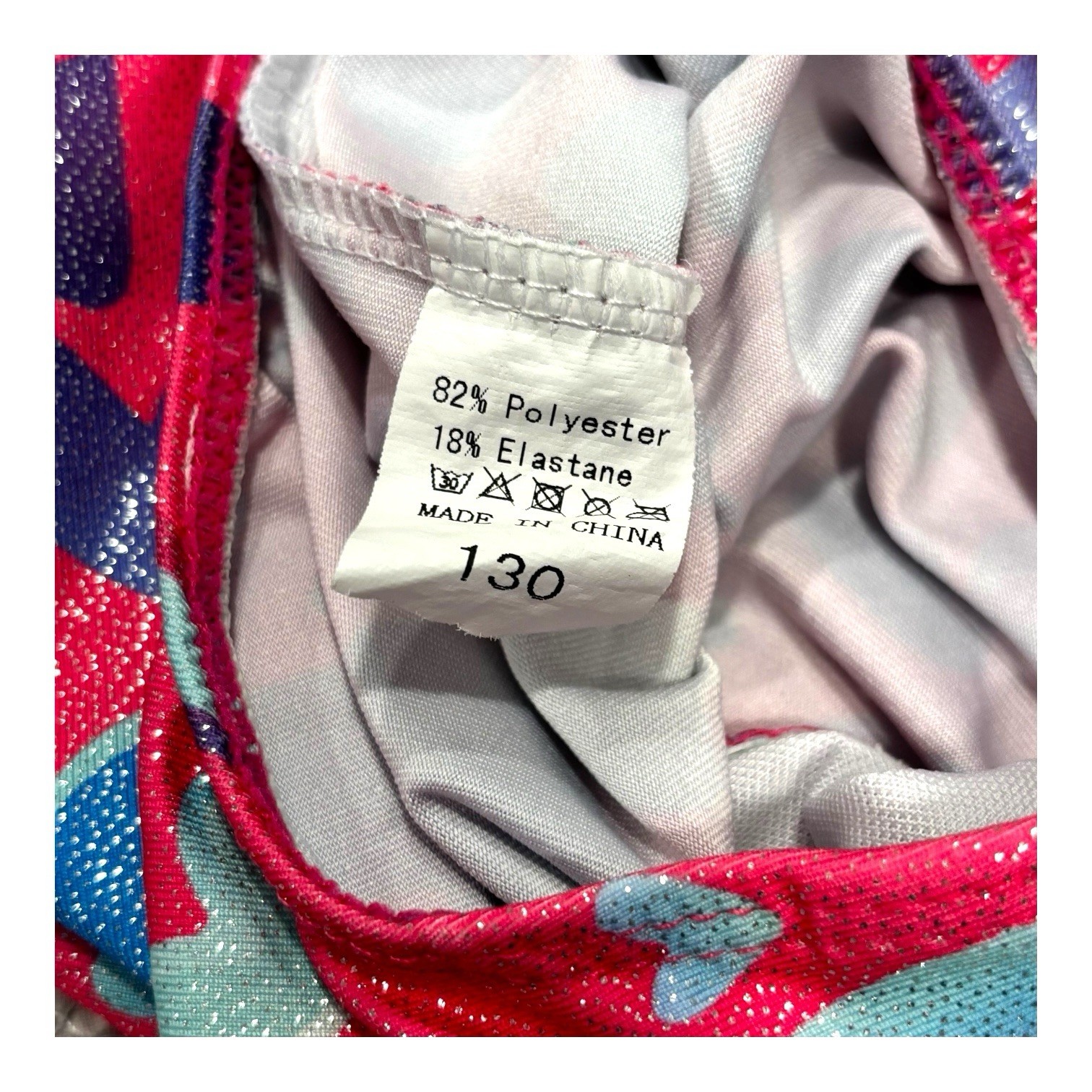 Girls Long Sleeve Leotard Size 130 7-8 Pink With Colorful Hearts Shimmer