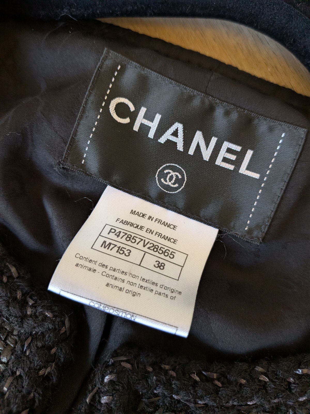 как выглядит CHANEL Spring 2014 Iconic Shimmery Black CC Tweed Jacket FR38 фото