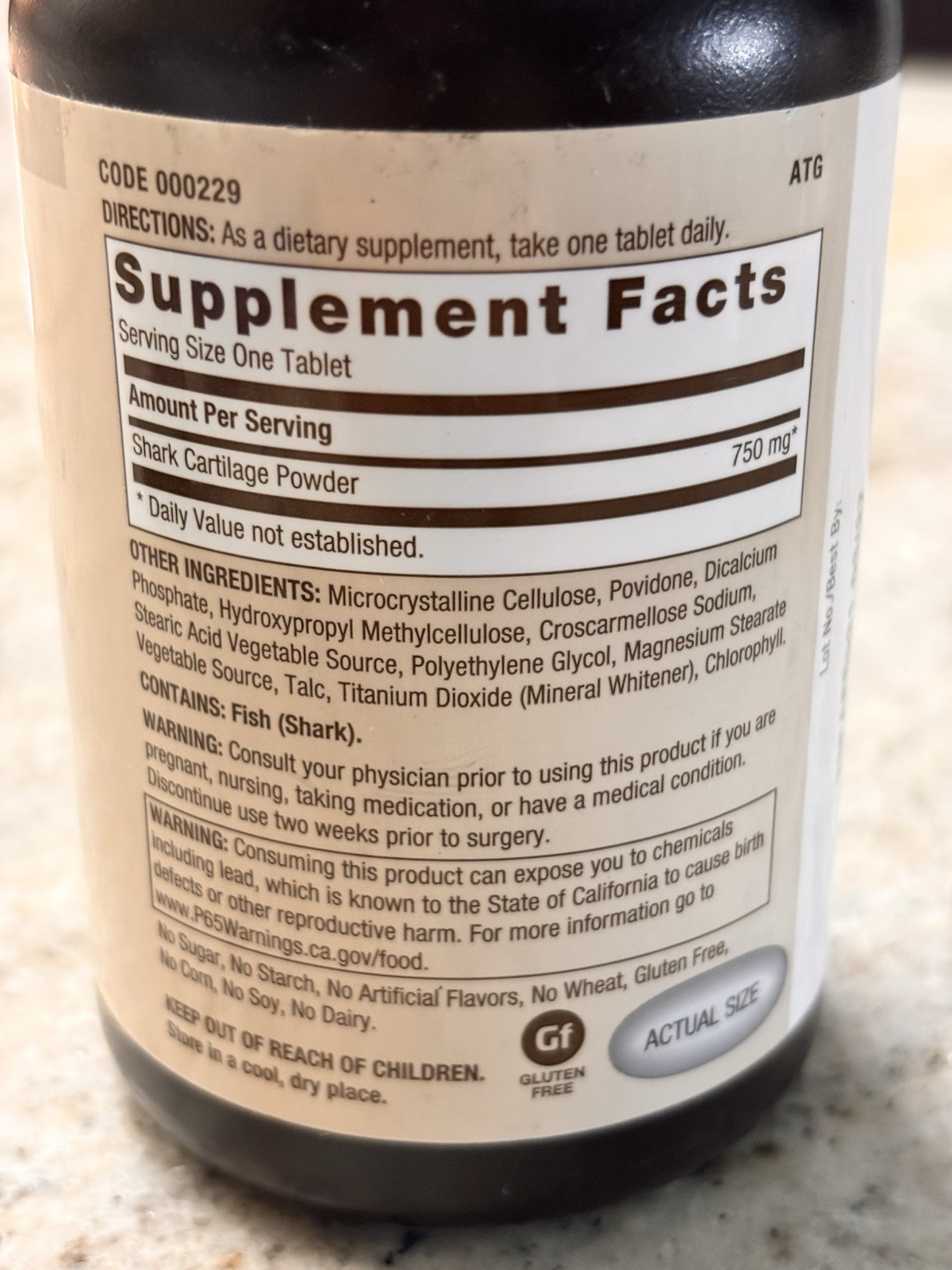 как выглядит GNC Natural Brand Shark Cartilage 750mg 180 Tablet Joint Health Hair Growth 3/27 фото