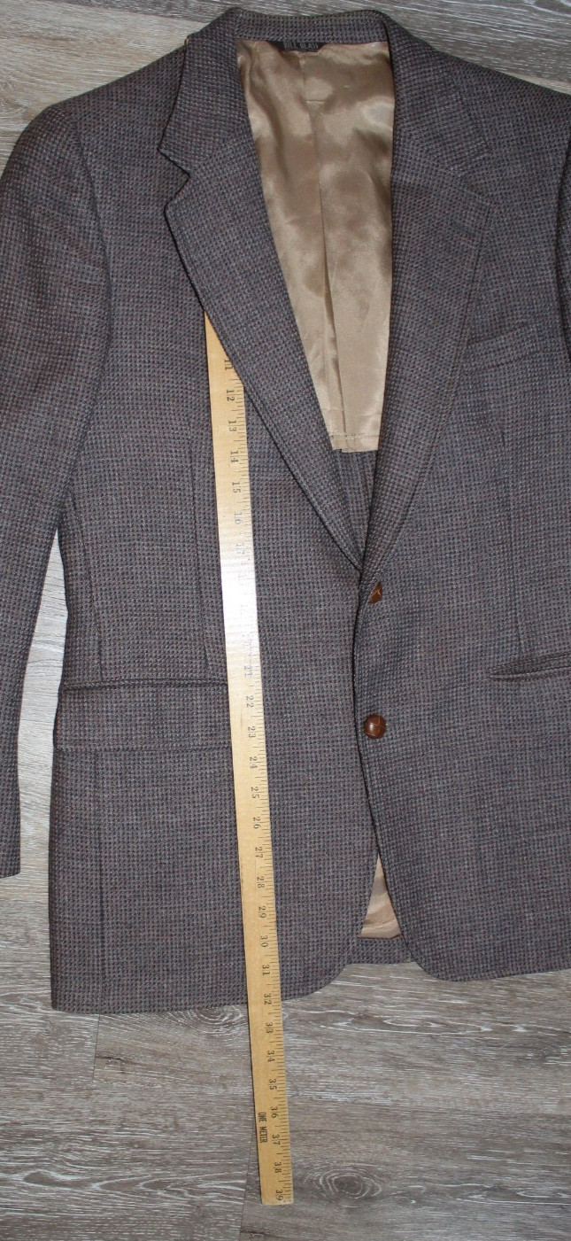 как выглядит Bill Blass Woven Sport Coat  42R  Brown Tweed w/ Leather Elbow Patches  32" L фото