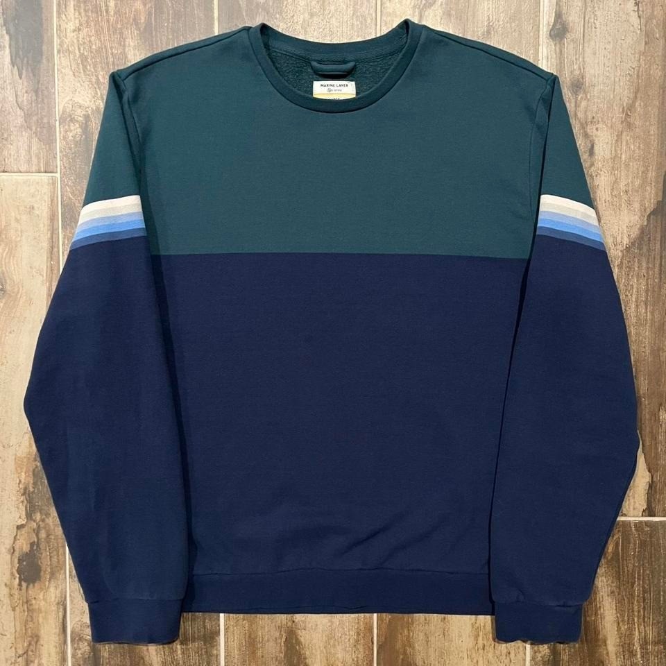 как выглядит Marine Layer Sweatshirt Mens L Navy Cotton Blend Colorblock Re-Spun Crewneck фото