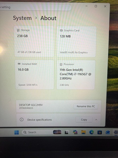 Lenovo E14 Gen2 i7-1165G7 256GB SSD 16GB RAM No Charger Included