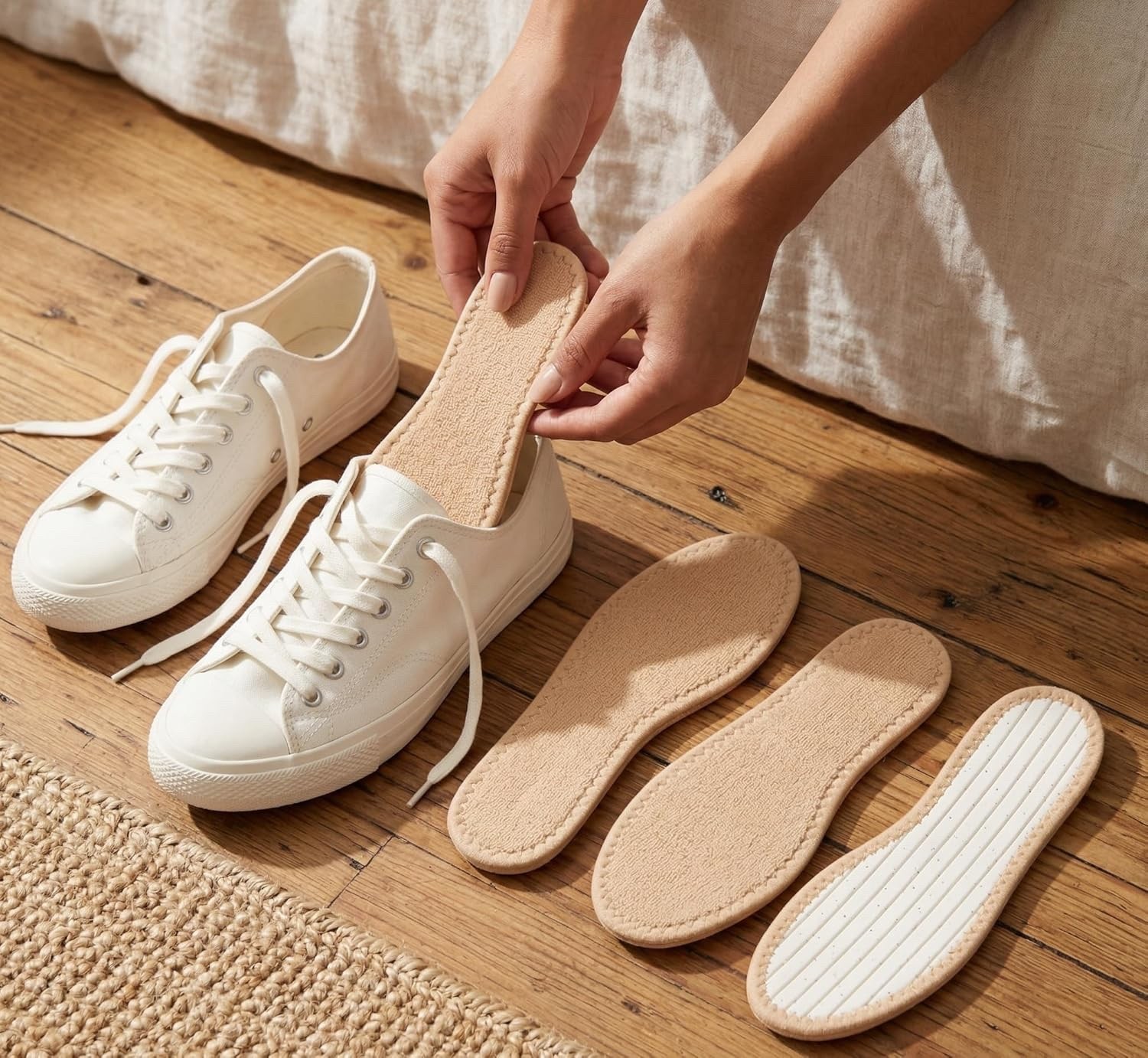 Washable Ventilate Absorbent Sweat Cotton Terry Shoe Insoles Women Men Tan