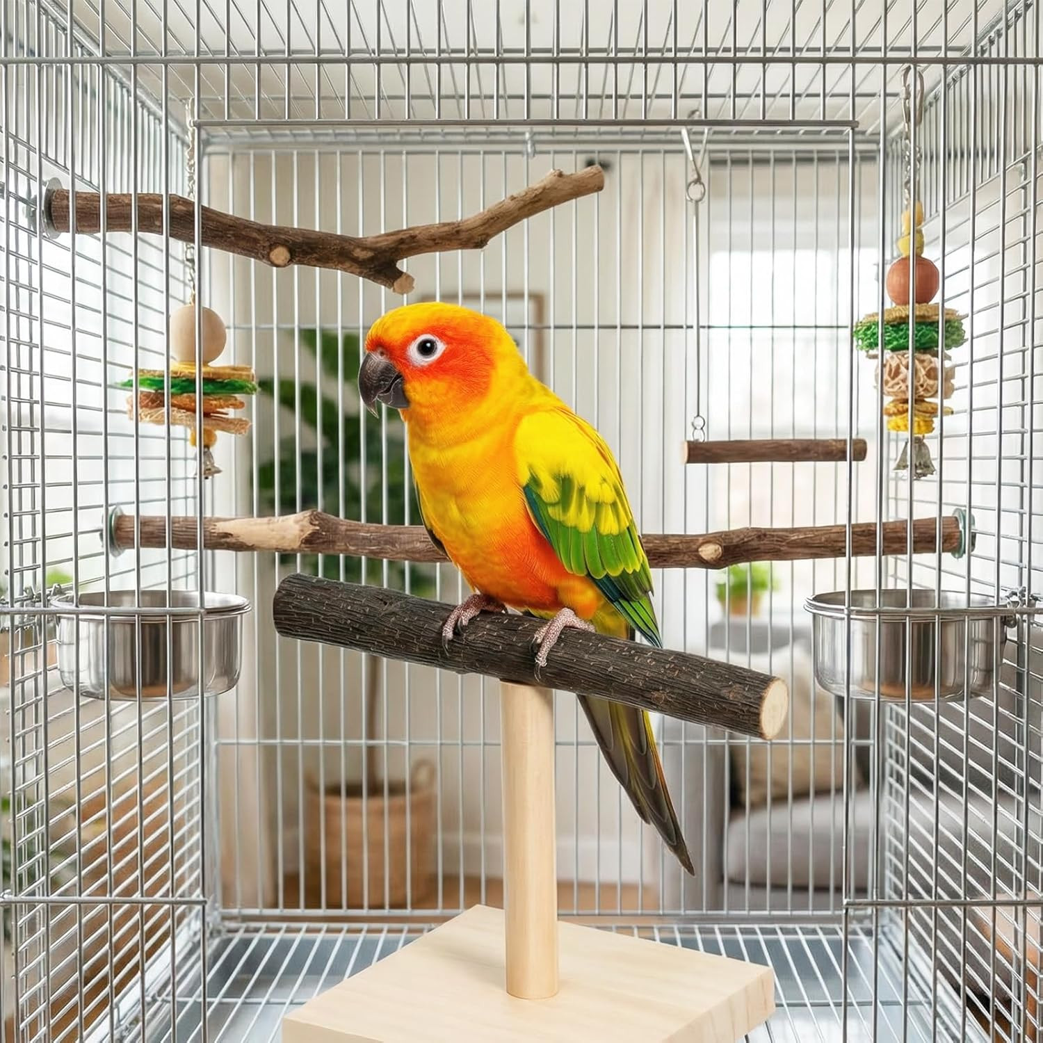 Bird Perch Stand Bird Training Stand Portable Tabletop Parrot Stands Natural Woo