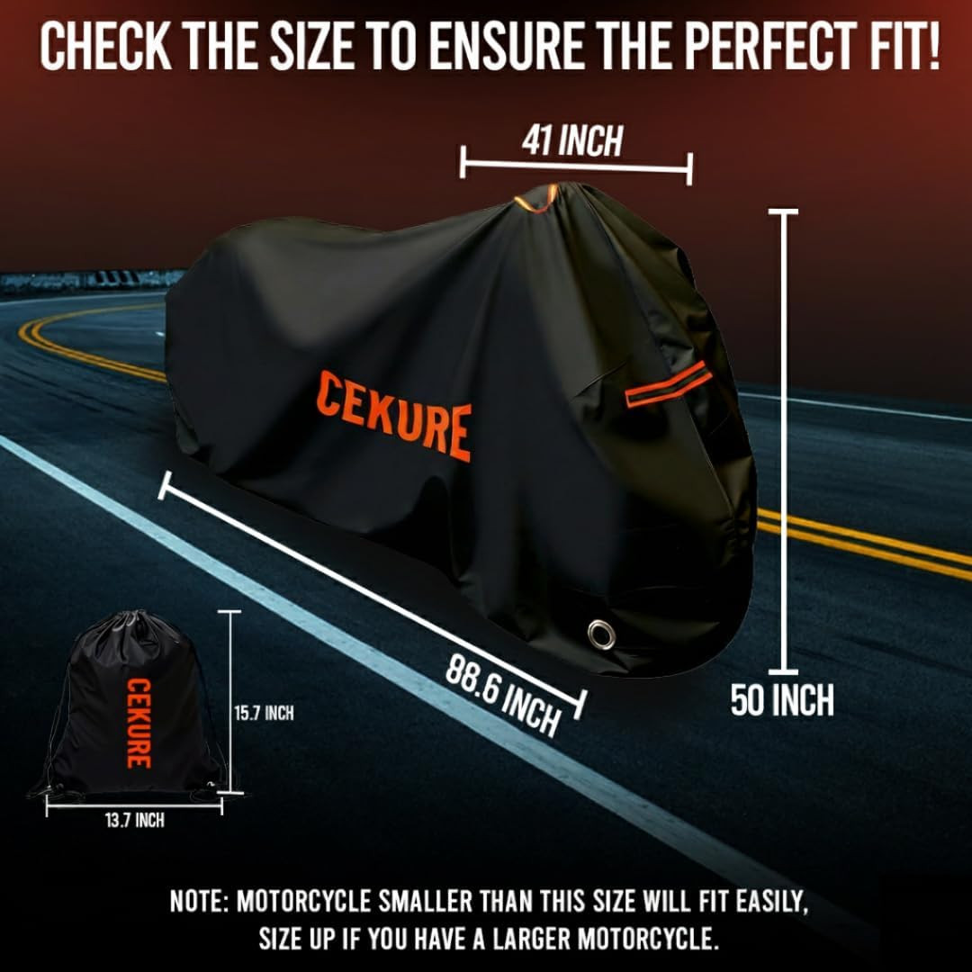 Coverage: Full exterior coverage for standard-sized Motorcycles