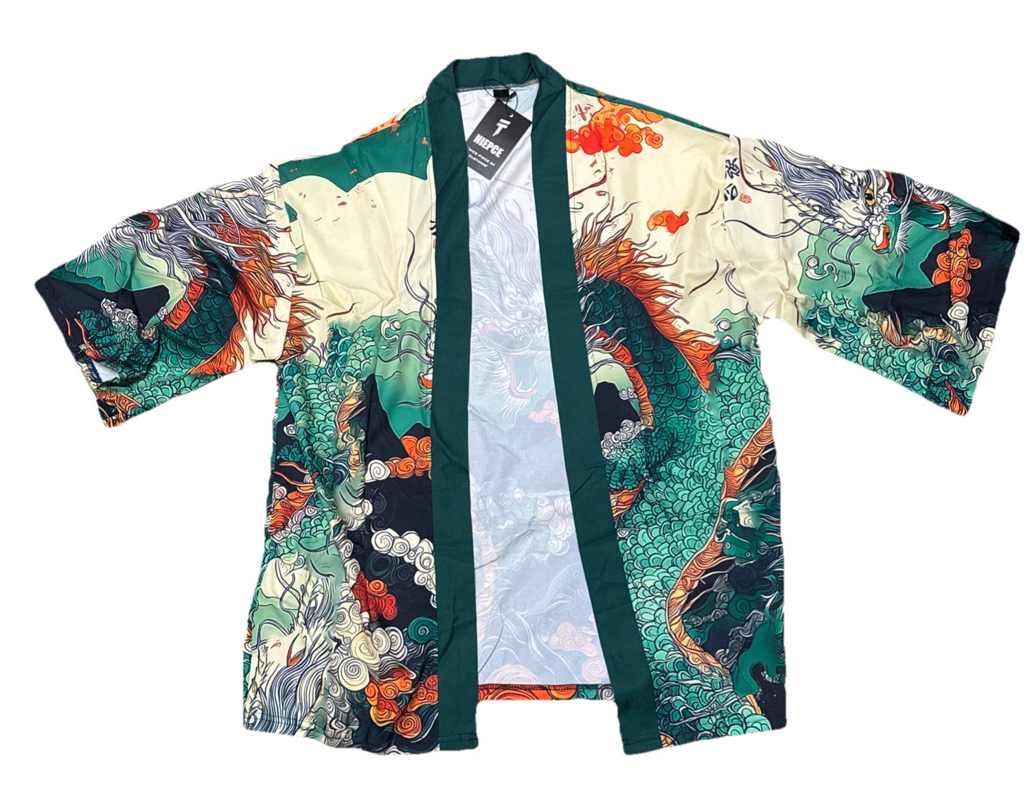 Niepce Men s Mythical Dragon Green Kimono Japanese Street Wear Size Large