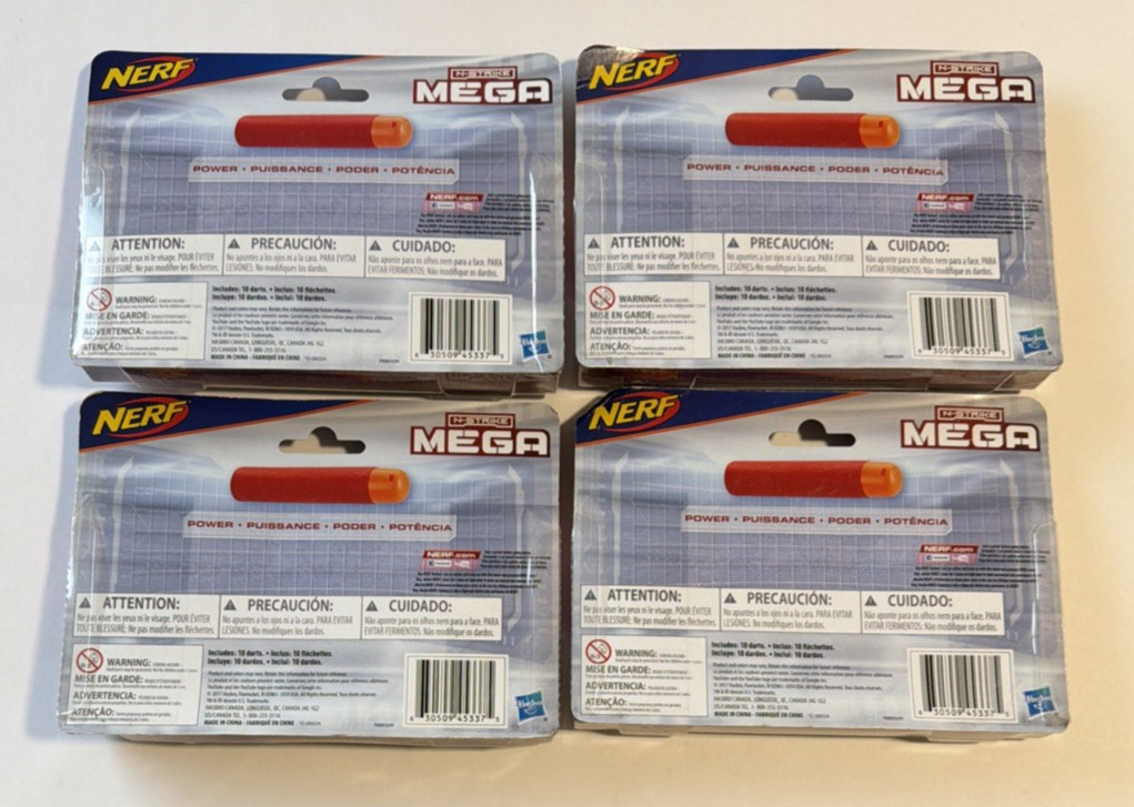 Lot Of 4 Nerf N-Strike Mega Darts Refill 10 Count Per Pack 40 Total