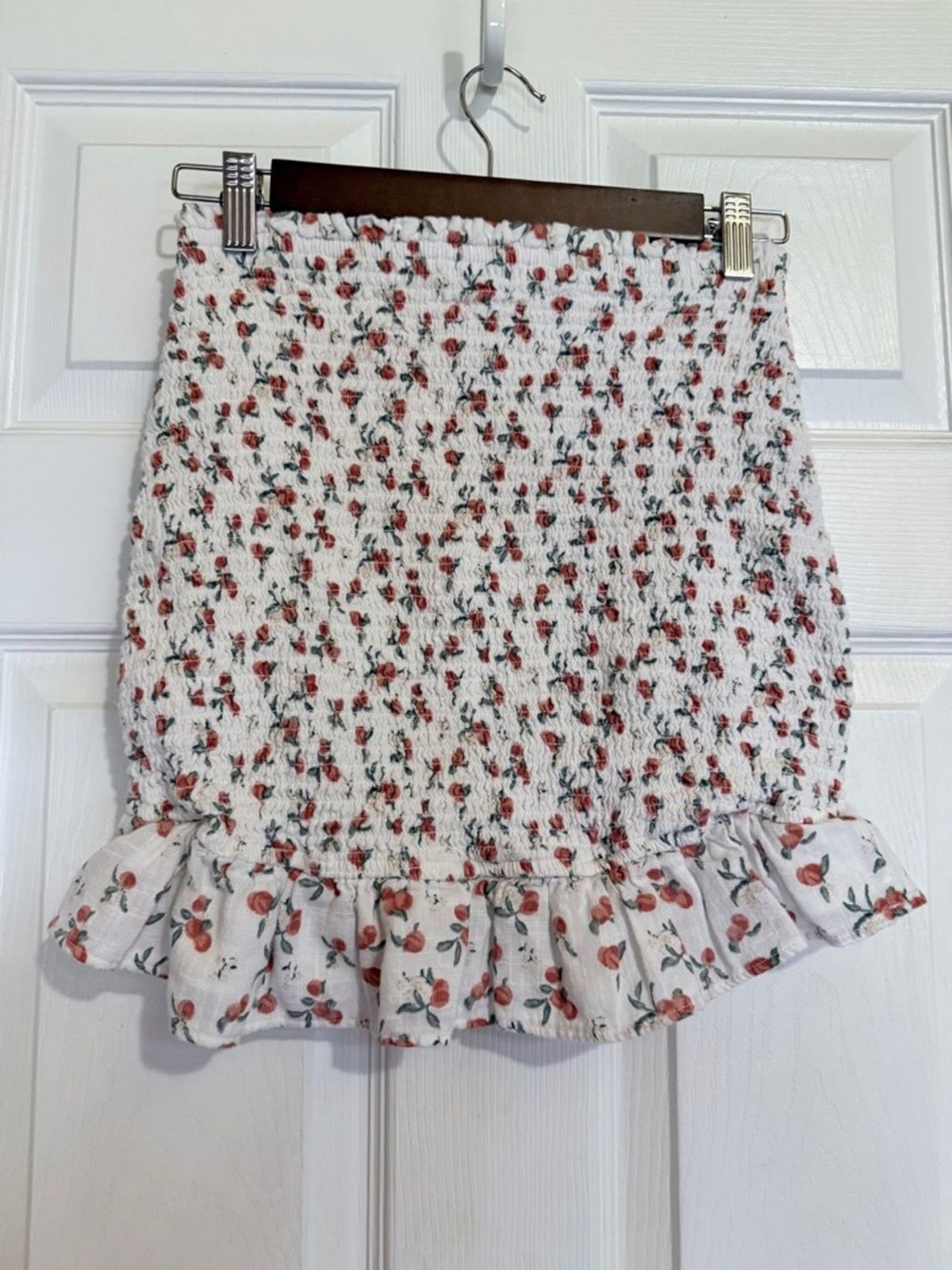 Abercrombie Fitch White Mini Skirt with Pink Floral Ruffle